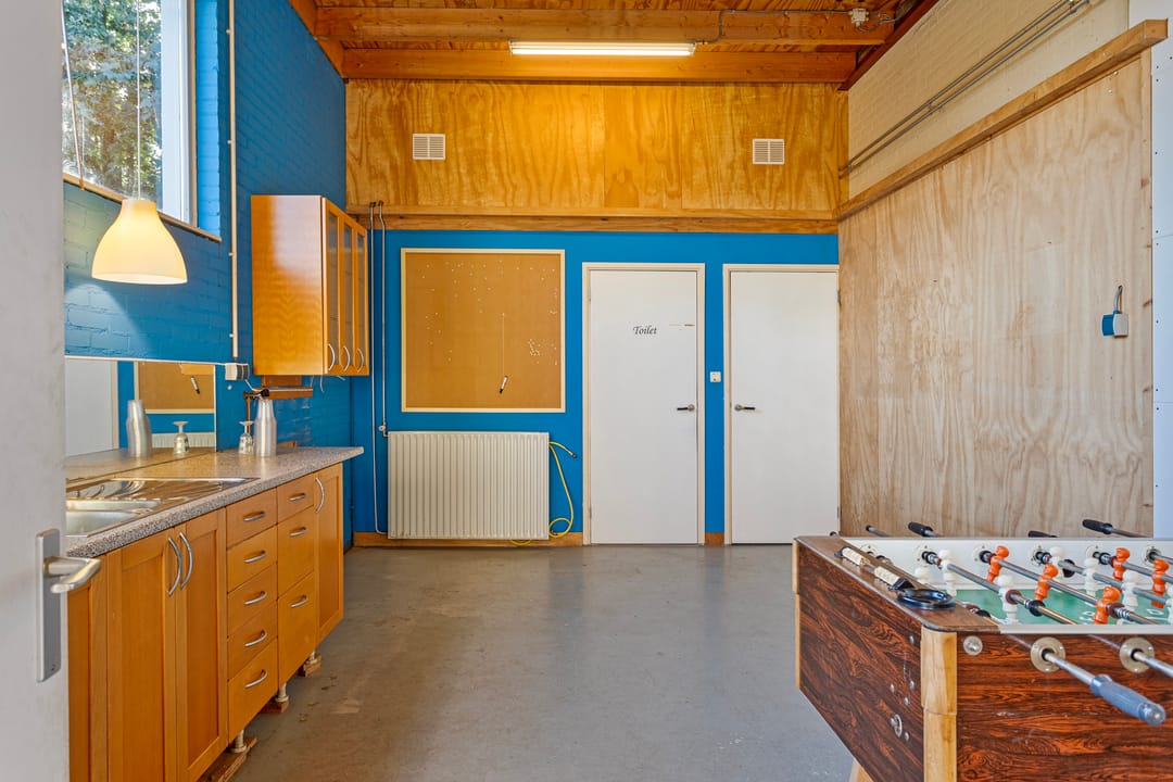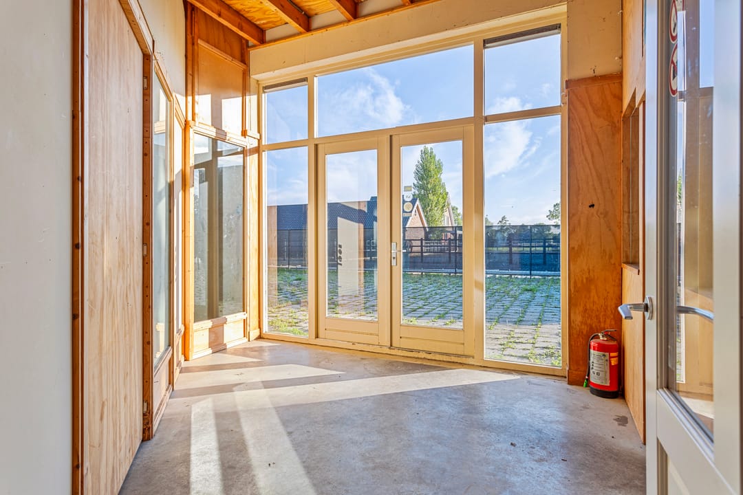 Deze bedrijfsruimte is gelegen aan de rand van het dorp en is zowel aan de voor- als achterzijde ontsloten. Dit maakt het bereik voor (groot) transport uitermate geschikt. Het pand beschikt over een werkplaats, die voorheen o.a. in gebruik is geweest voor het verwerken van hout. Daarnaast is er een algemene ruimte, die geschikt is als kantoor en zeker ook als lokaal voor het geven van lessen of cursussen. Deze ruimte is rondom voorzien van daglicht, wat het geheel uitermate prettig maakt. Tevens is er een aparte kantoorruimte, 2 bergruimtes, de toilettengroep, doucheruimte en de kantine.