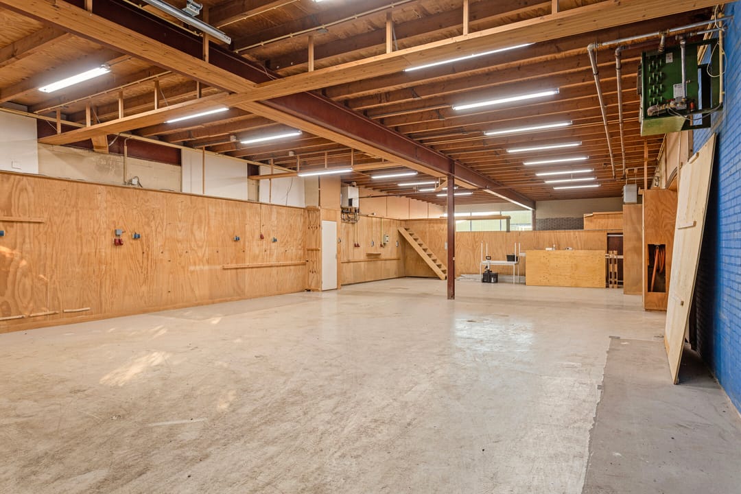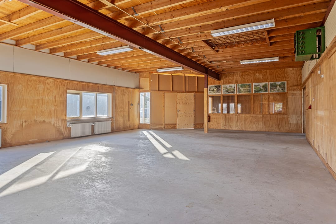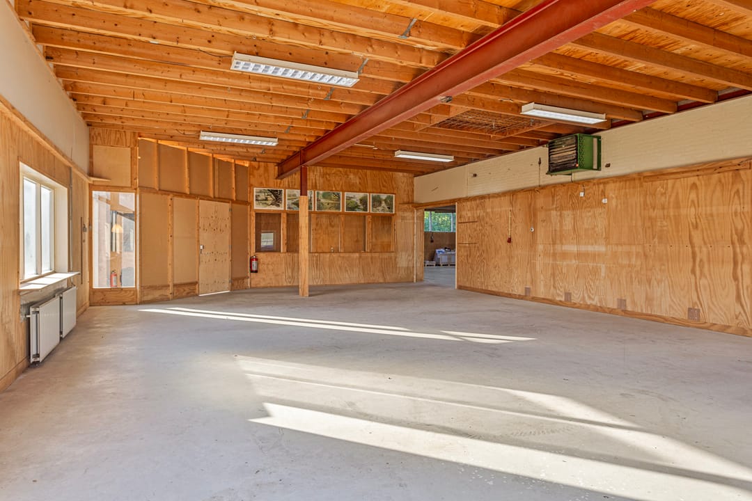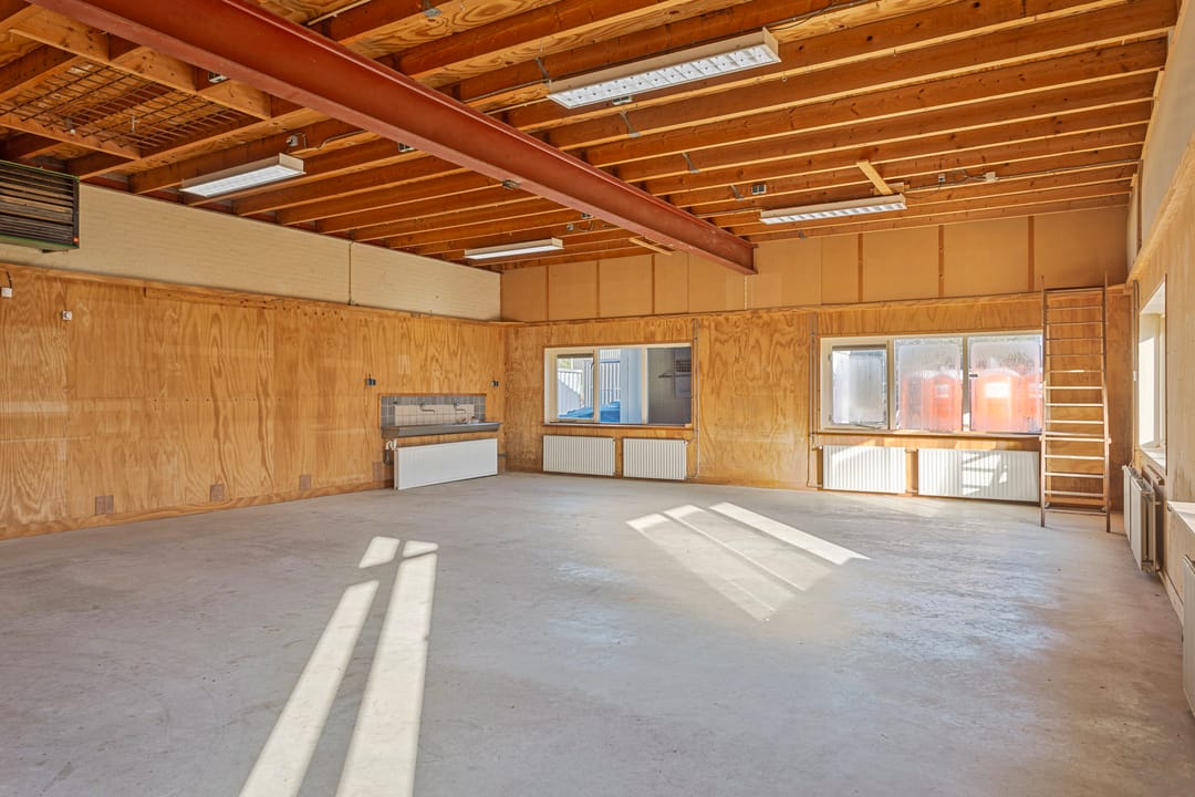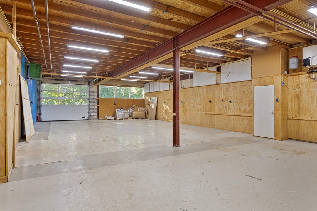 - Overheaddeuren, betonvloer, heater, toilet en pantry