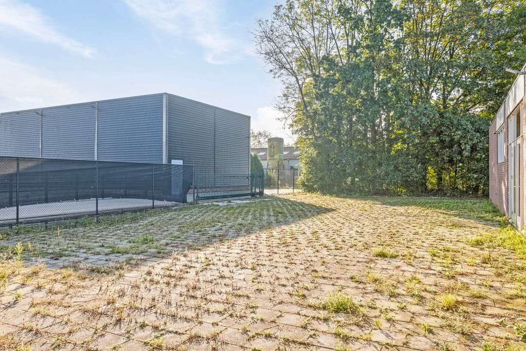 Rondom het gebouw is de buitenruimte eveneens beschikbaar. De buitenruimte is geschikt voor het parkeren van auto's of het uitvoeren van bijvoorbeeld praktijklessen. Deze achterzijde geeft tevens de ontsluiting voor groot vervoer voor het leveren van producten of materialen.