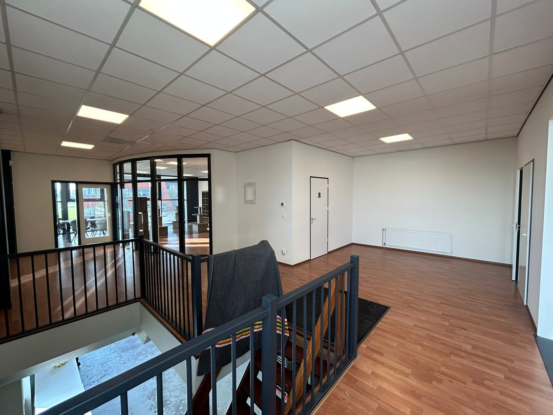 Via de houten trapopgang bereikt u de kantoor-/presentatieruimte op de 1e verdieping. De kantoorruimte is in totaal ca. 168 m2 groot en is onder meer voorzien van: