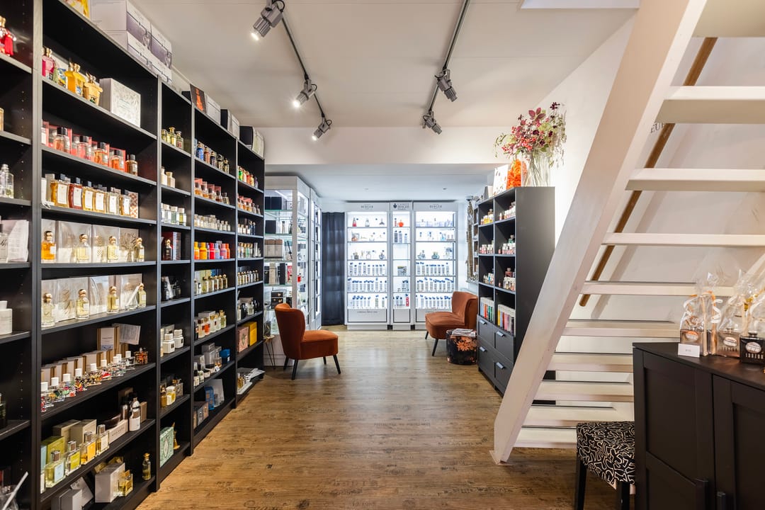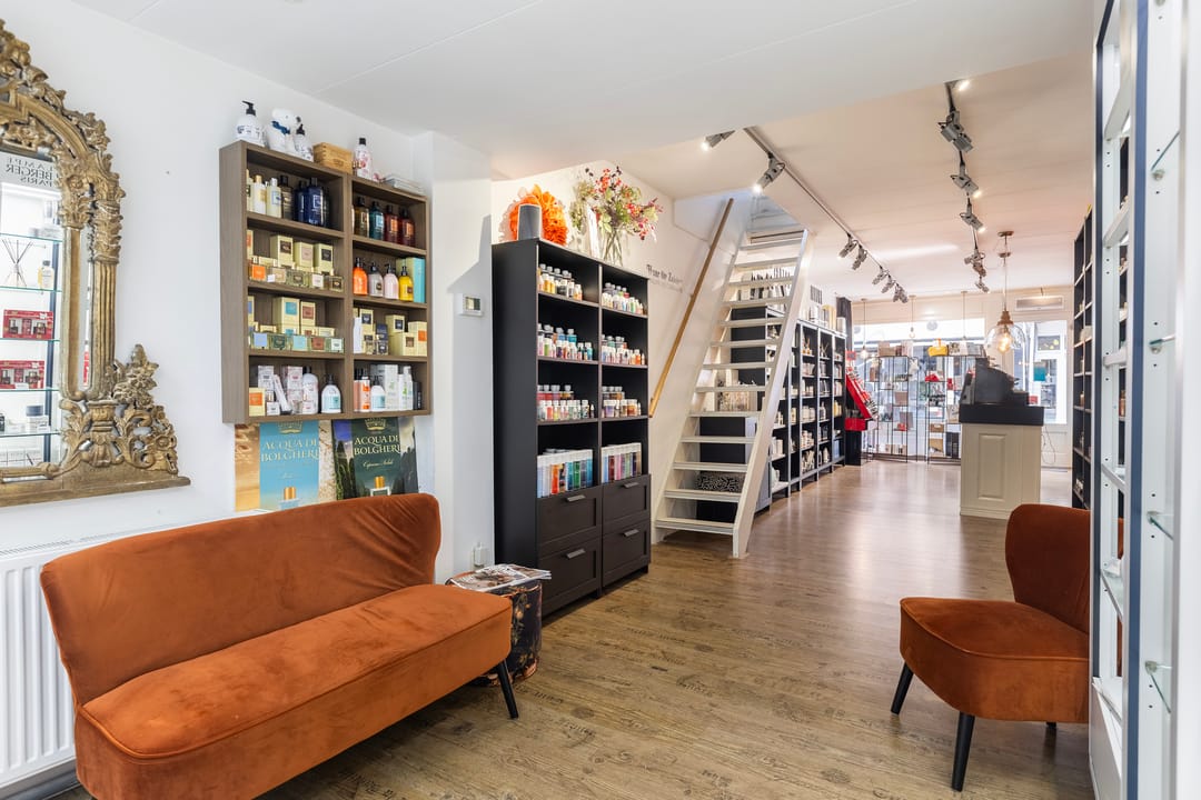 De winkelruimte op de begane grond is momenteel in gebruik als stijlvolle parfumerie en maakt direct een verzorgde en professionele indruk. Dankzij de brede etalage en de prettige indeling is dit een aantrekkelijke plek om klanten te ontvangen en producten optimaal te presenteren. Achterin bevinden zich een praktische pantry en bergruimte, ideaal voor dagelijks gebruik en opslag.