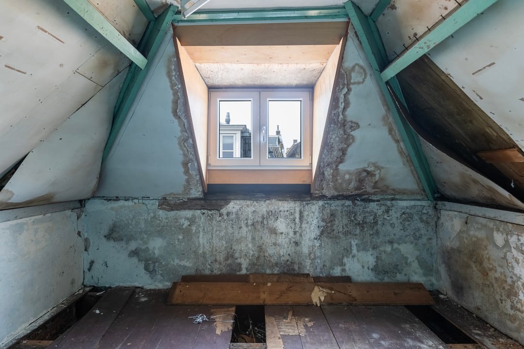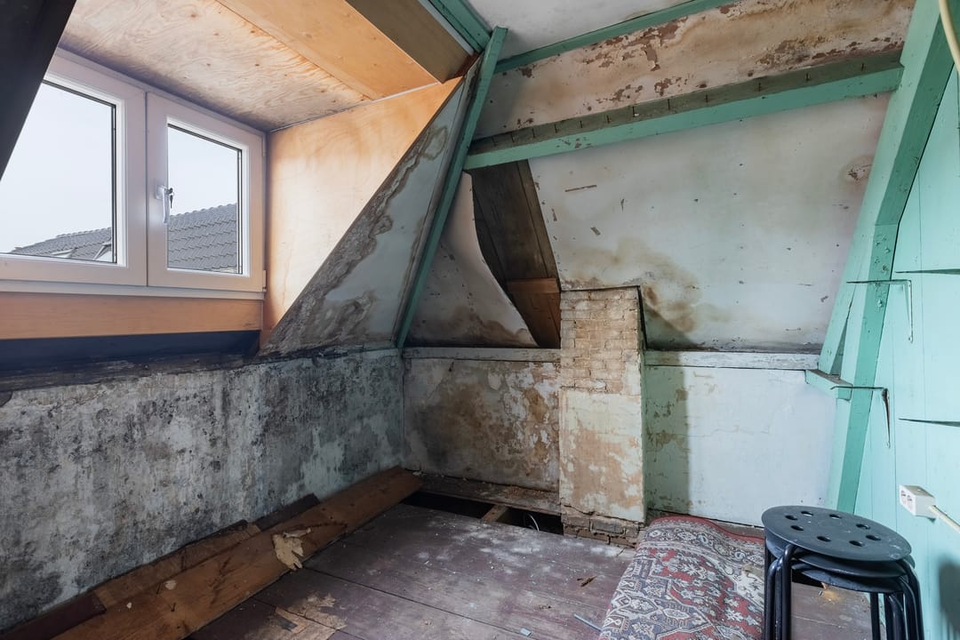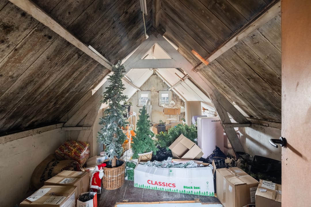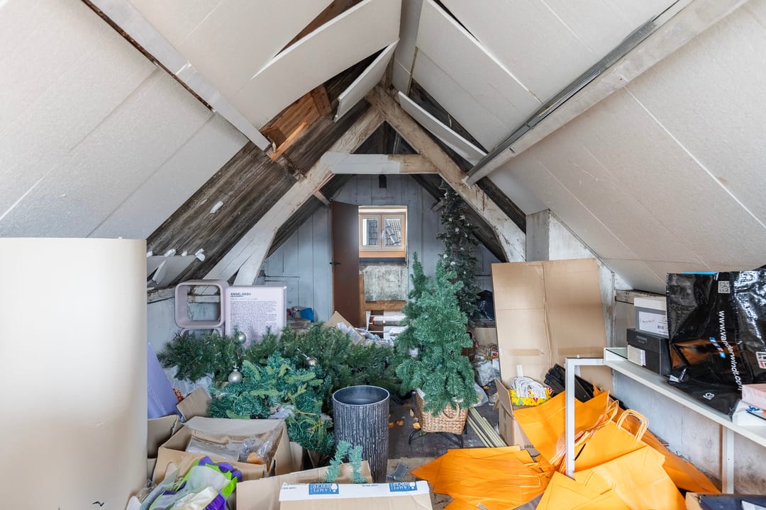 Via trap bereikbare vliering. Deze ruimte wordt momenteel gebruikt als opslag en biedt extra praktische vierkante meters.