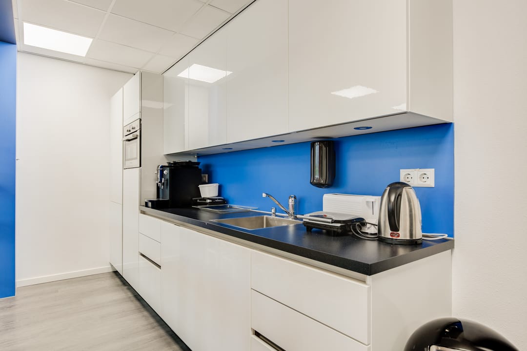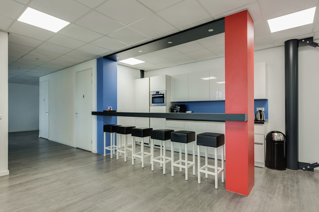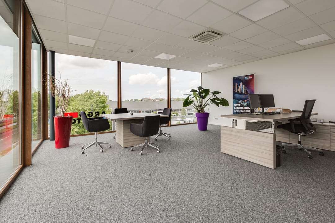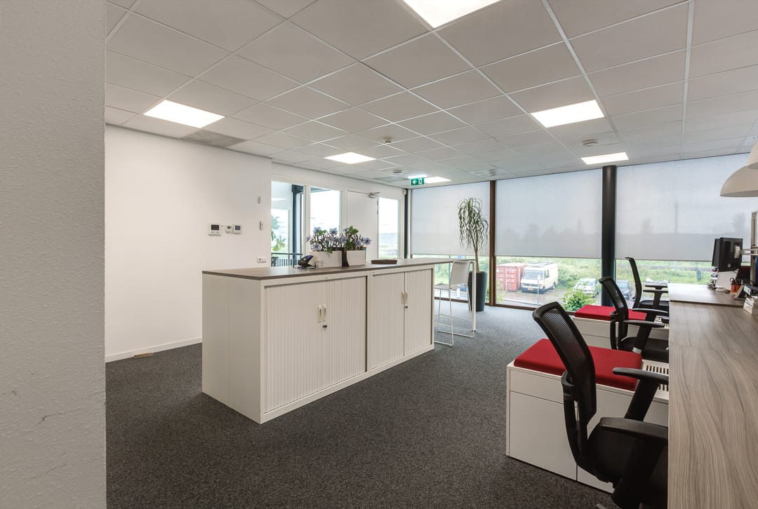 De kantoorruimte (678 m² VVO) aan de voorzijde is verdeeld over 3 lagen en is in 2013 geheel nieuw opgebouwd. Via een centrale trappenhuis, waarbij in het ontwerp rekening is gehouden met een personenlift, zijn de verdiepingen te bereiken. De kantoren zijn rondom voorzien van glas wat zorgt voor veel natuurlijk lichtinval en zijn verder onder meer voorzien van: