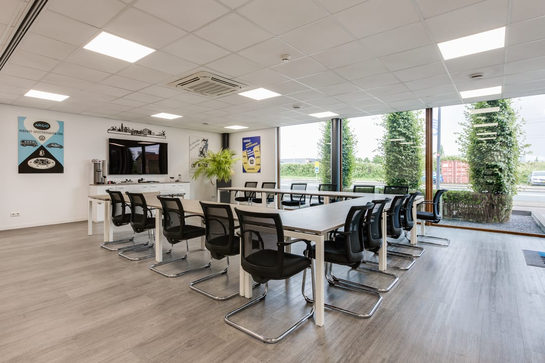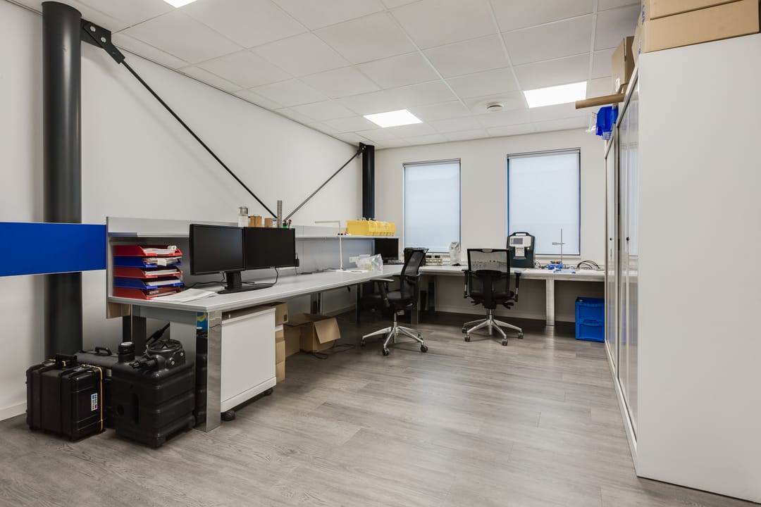 - Lichtstraten, overheaddeuren, heater, toilet, pantry, airconditioning en inbouwarmaturen