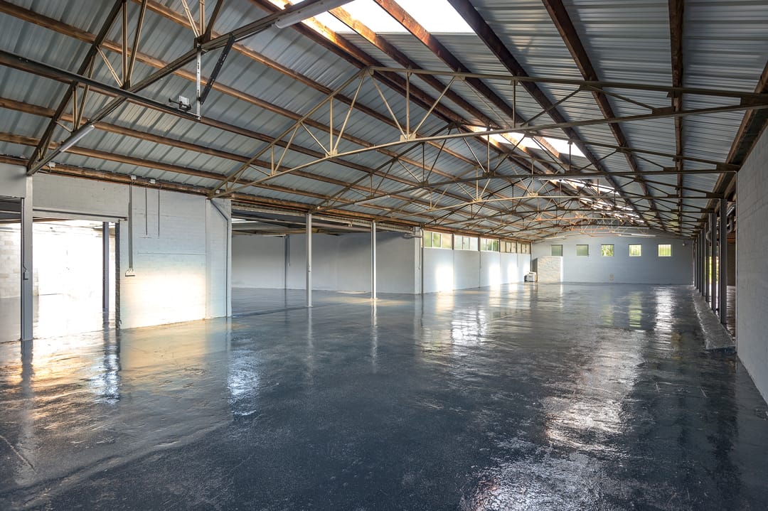 - Lichtstraten, overheaddeuren, krachtstroom, betonvloer, toilet en pantry