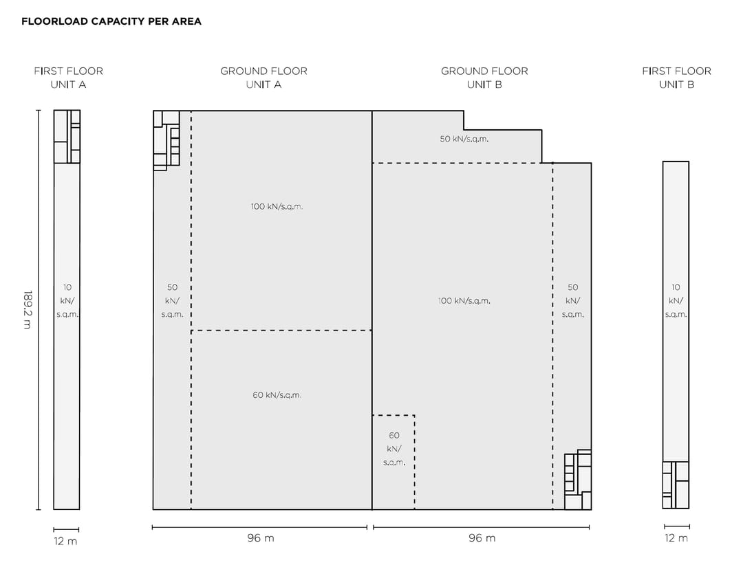 - Vloerbelasting warehouse 6.000 kg/m2 - 10.000 kg/m2