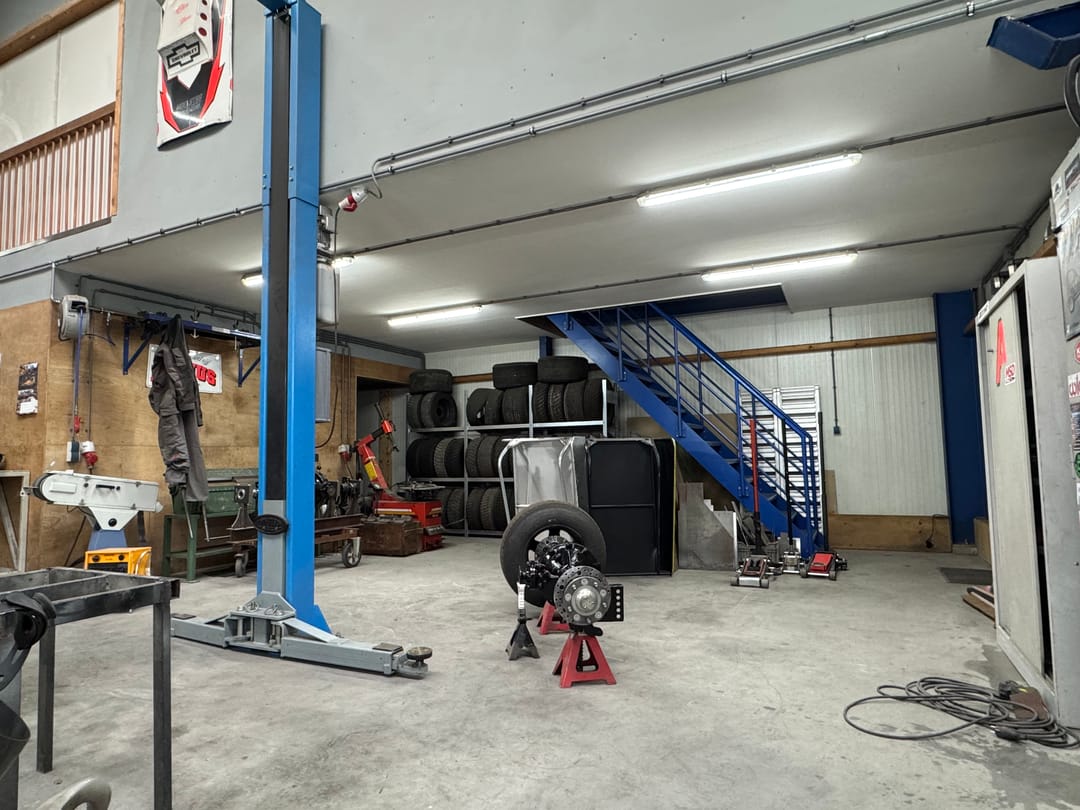 Een bedrijfsruimte van ca. 241 m2 met 50 m2 kantoor (op dit moment ingericht als kantine/bar) en 2 entresolvloeren van respectievelijk ca. 50 en 74 m2.