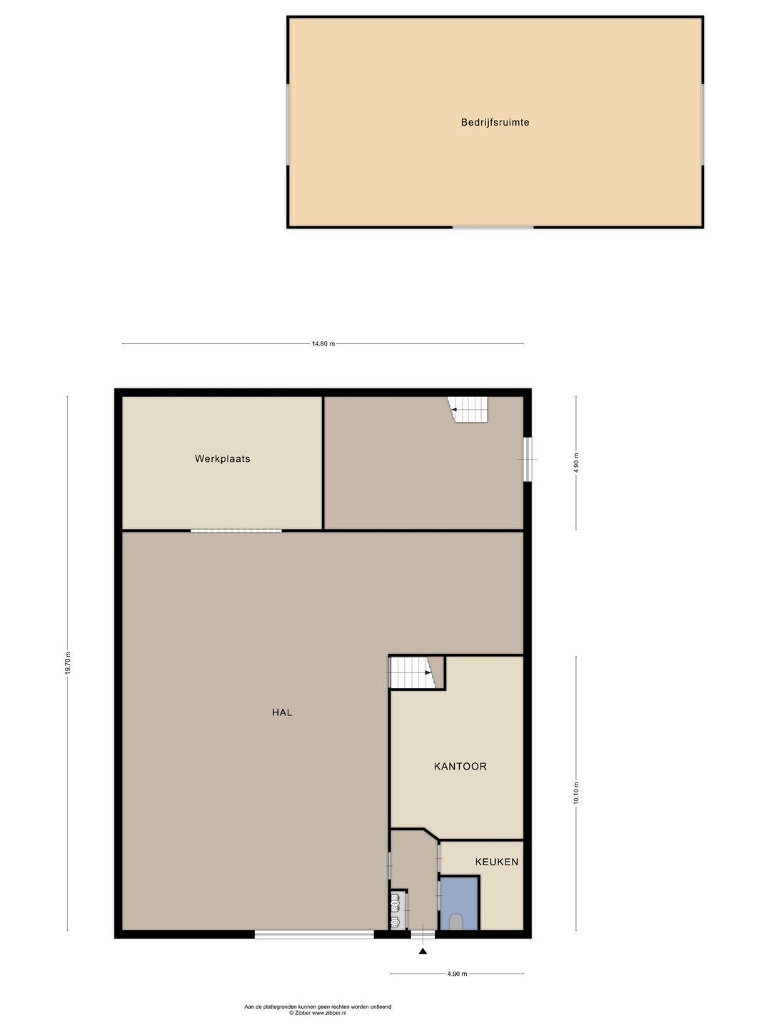 Het geheel omvat 2 bedrijfshallen met de volgende afmetingen: