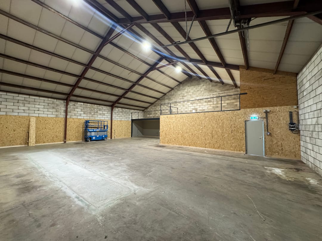 - Overheaddeuren, krachtstroom, betonvloer, toilet en pantry