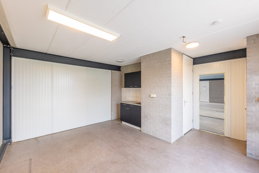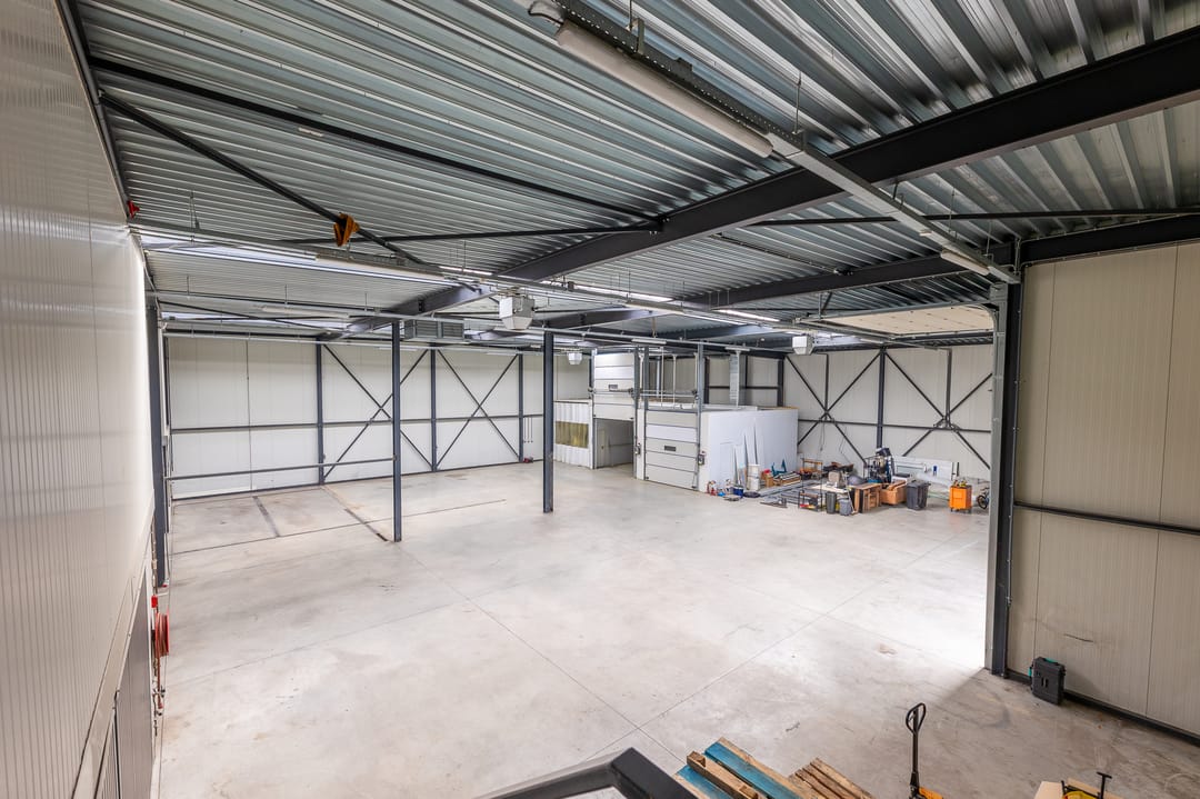 - Lichtstraten, overheaddeuren, krachtstroom, betonvloer, heater, toilet, pantry, airconditioning, inbouwarmaturen en te openen ramen