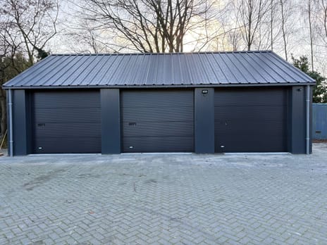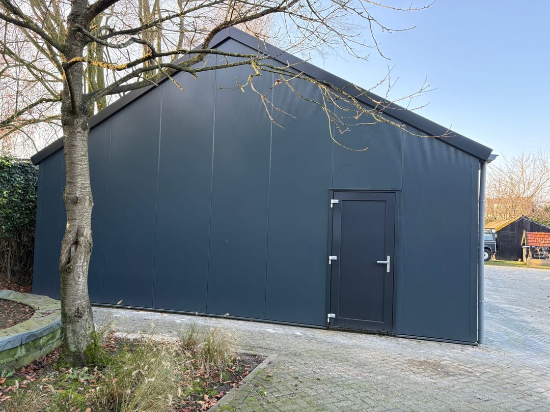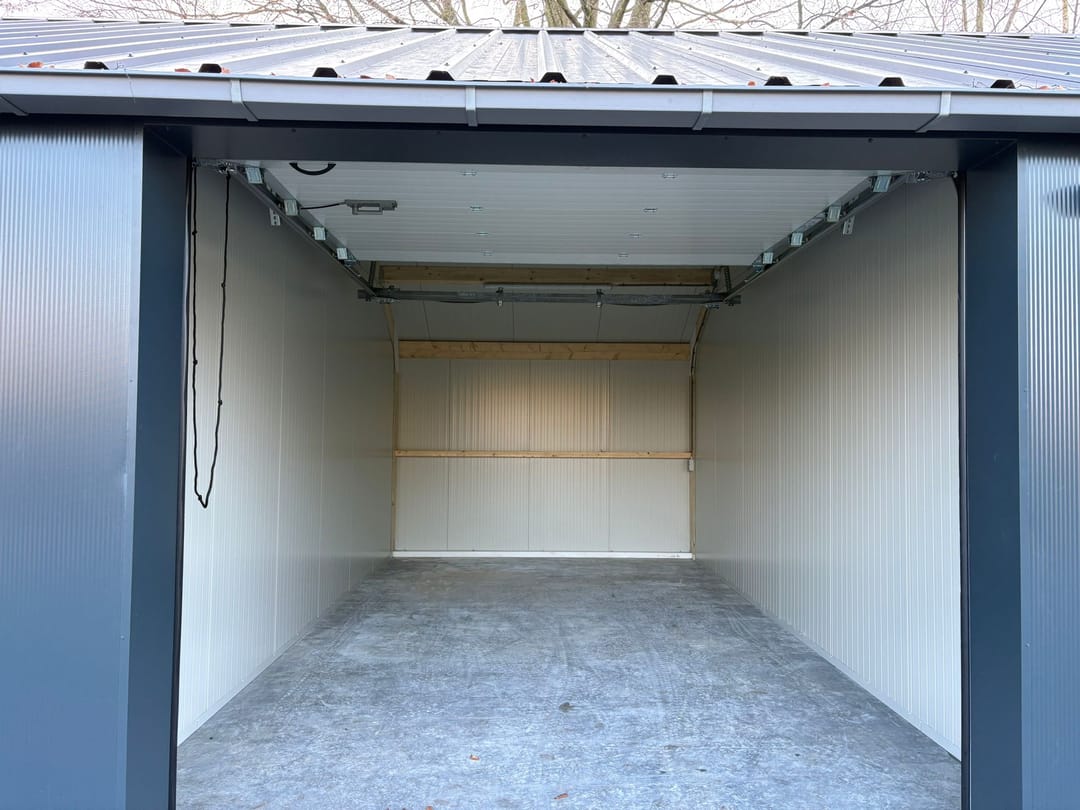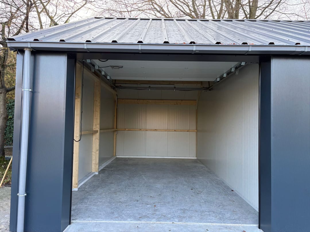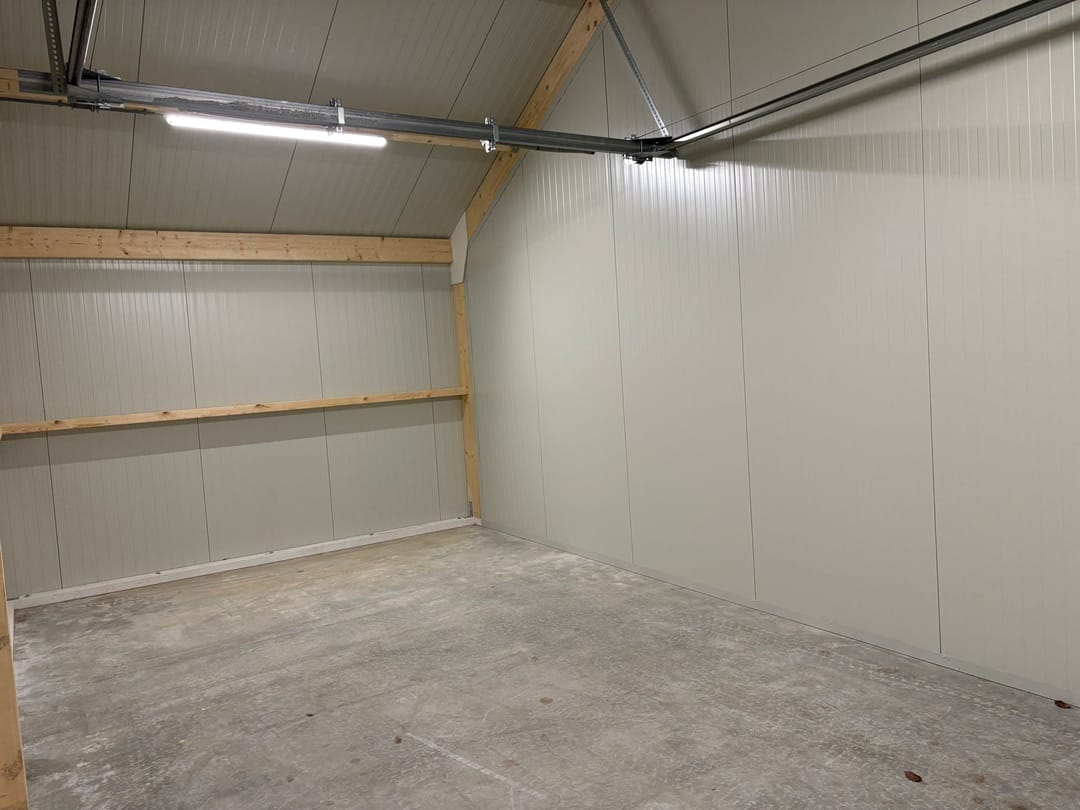 Net gebouwde opslagruimte. De bedrijfsruimte is 8x4 meter groot en zijn voorzien van een overheaddeur en stroomvoorzieningen. De overheaddeur heeft een mooie hoogte zodat er ook bijvoorbeeld een camper in gestald kan worden.