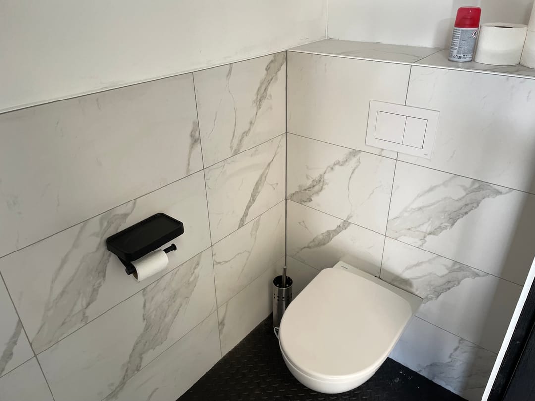 - Betonnen begane grondvloer afgewerkt met rubberen afdekvloer;