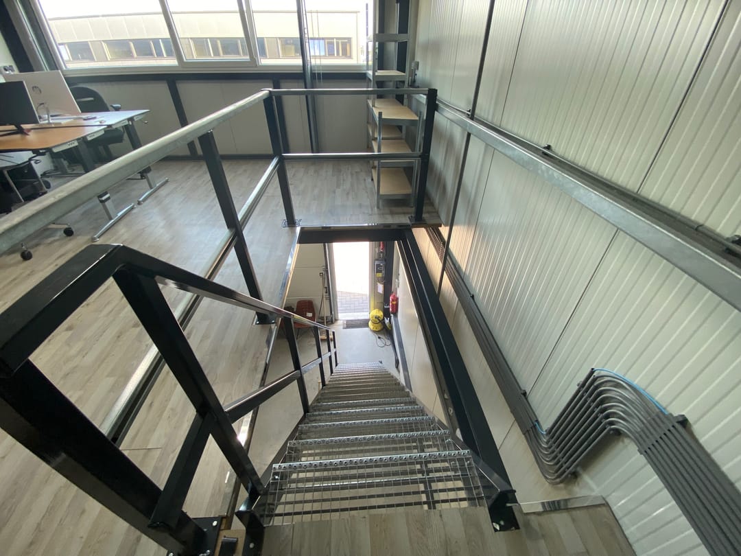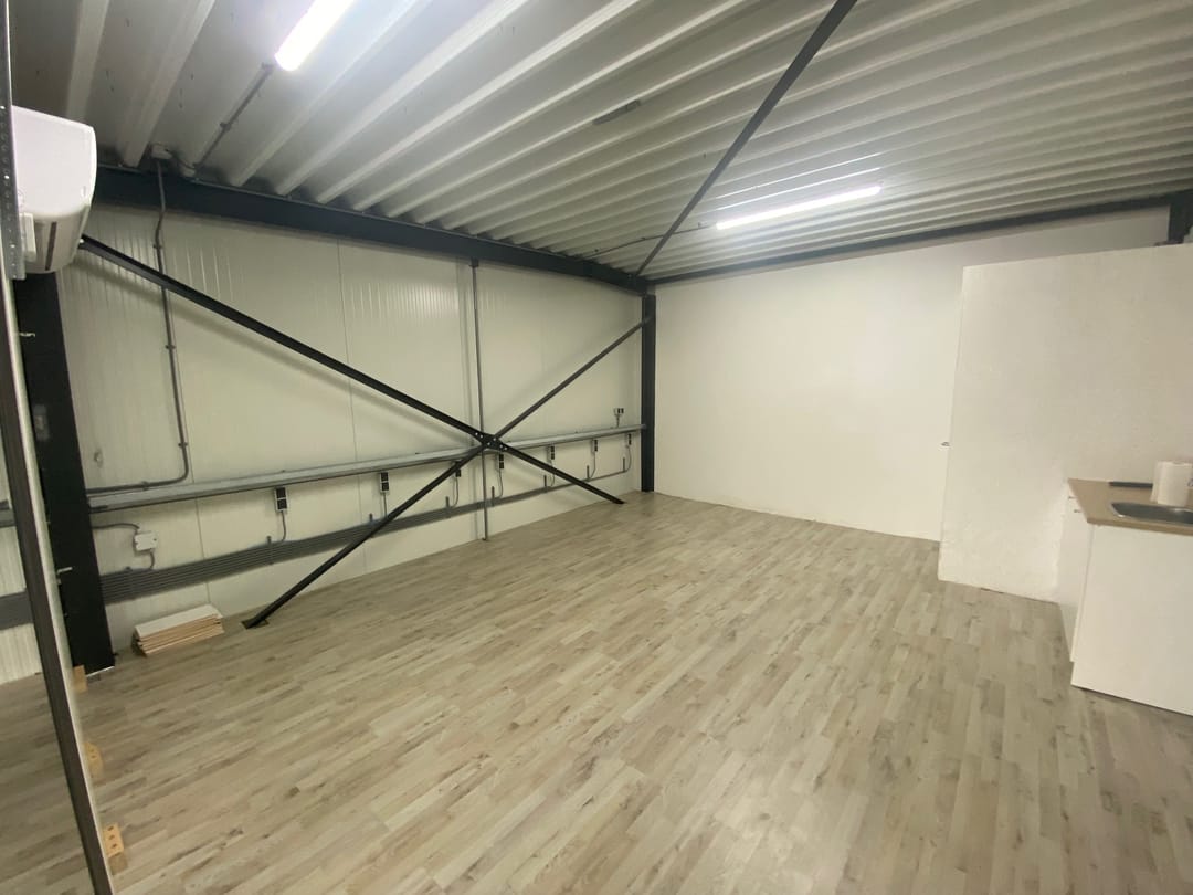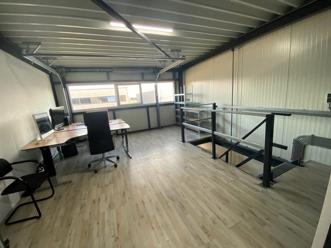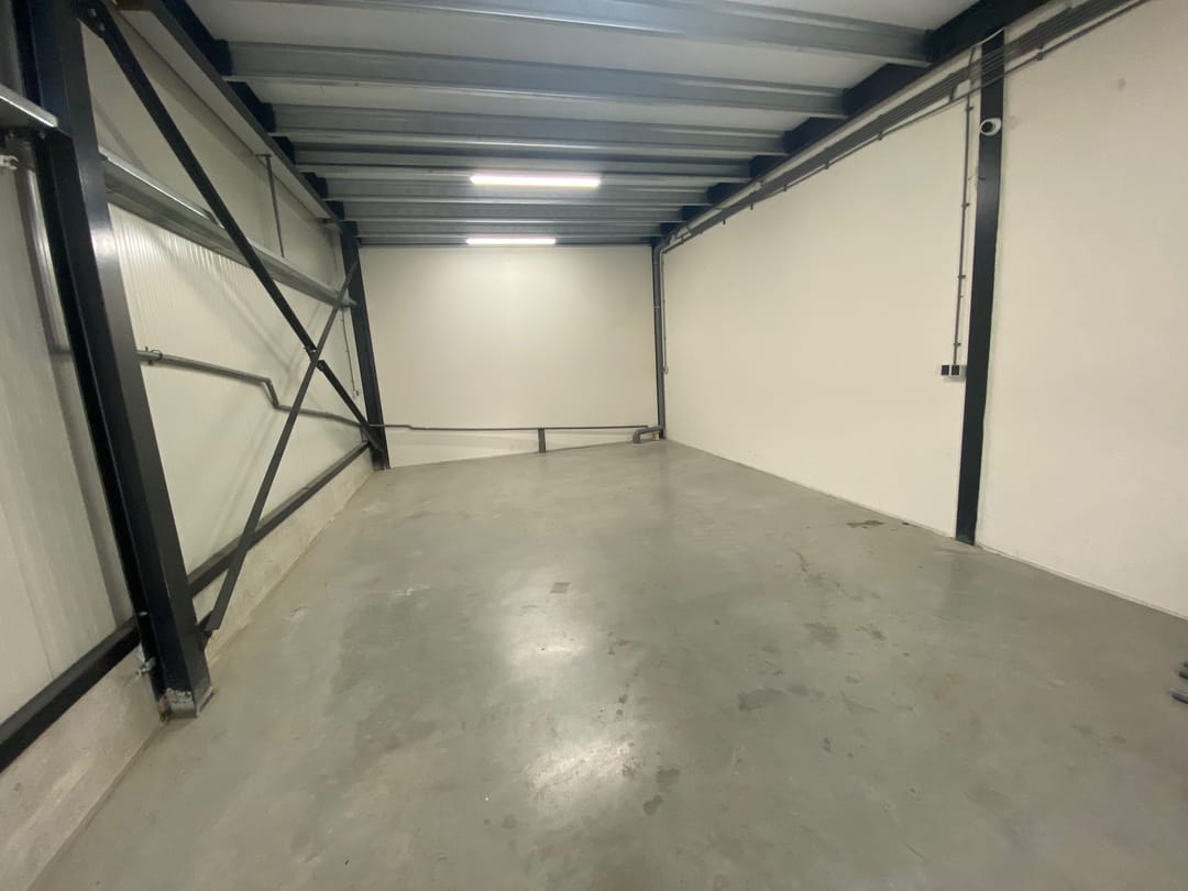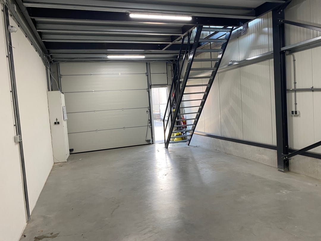 Elektrisch bedienbare sectional deur (doorrijhoogte van 3.30 meter) met naastgelegen loopdeur aan de voorgevel. Eigen meterkast met elektra (3 fase aansluiting) , water- en CAI aansluiting, toilet op de verdieping en een pantry. De begane grondvloer is een afgewerkte betonvloer met een maximale vloerbelasting van 1500 kg/m2. De verdiepingsvloer is van hout.