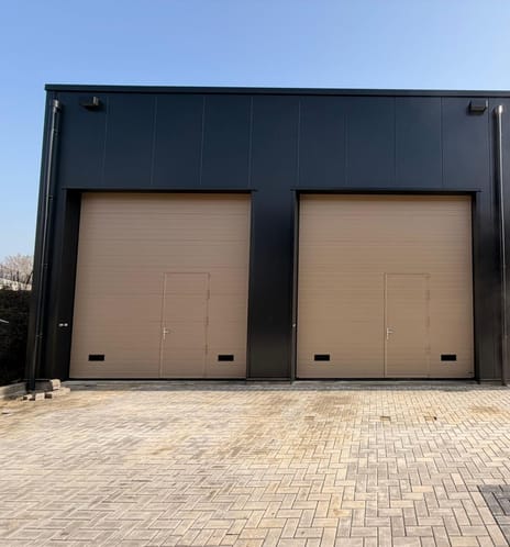 -Deuren: geïsoleerde elektrische sectionaaldeur met geïntegreerde loopdeur