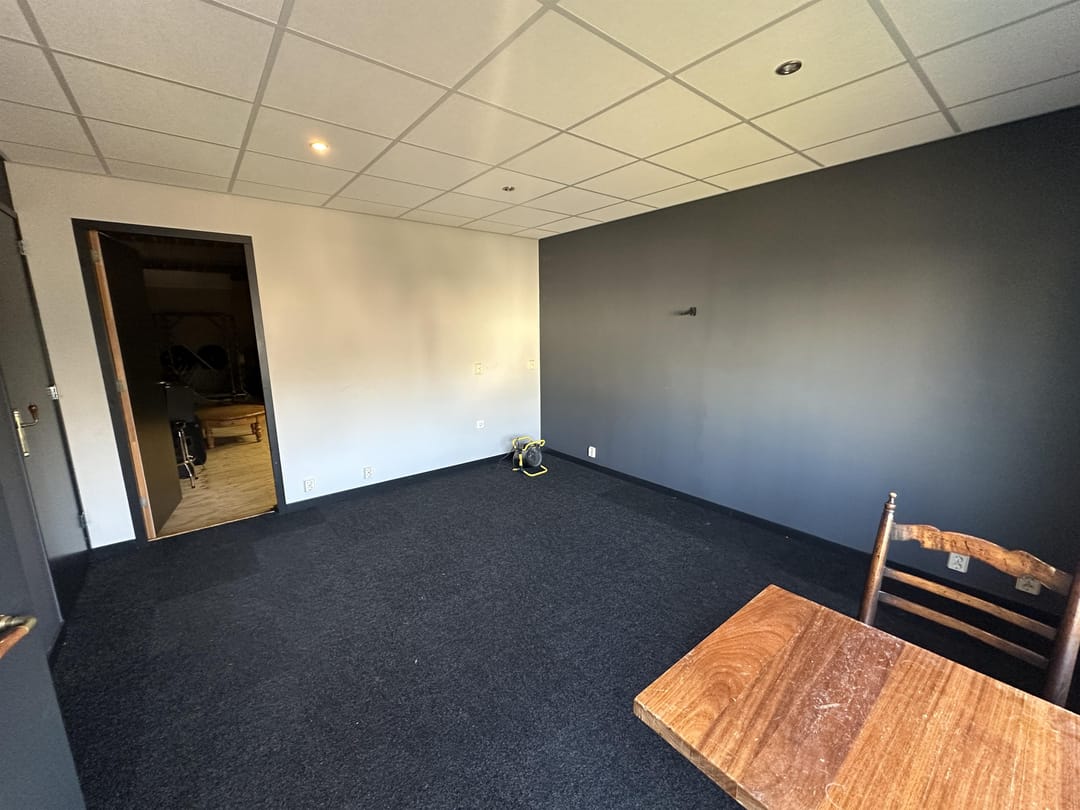 De bedrijfsruimte op de begane grond heeft een bruto vloeroppervlakte van circa 150 m² en is toegankelijk via een separate loopdeur en een extra ruime overheaddeur van circa 4,1 meter breed en 4,3 meter hoog, ideaal voor grotere voertuigen en goederenstromen.