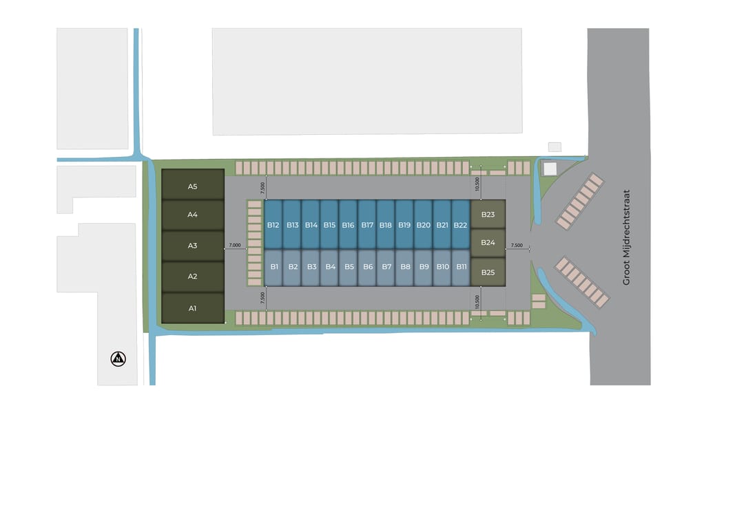 Op het dynamische bedrijventerrein in Mijdrecht wordt een nieuw businesspark gerealiseerd. Op deze goed bereikbare locatie komen 30 energiezuinige bedrijfs-/kantoorruimtes in verschillende maatvoeringen. Alle ruimtes zijn uitgerust met een elektrische overheaddeur en een verdiepingsvloer. Er is een zee aan ruimte om de indeling naar eigen wens te bepalen. Het iconische entreepoortgebouw geeft het businesspark Groots Mijdrecht een unieke uitstraling!