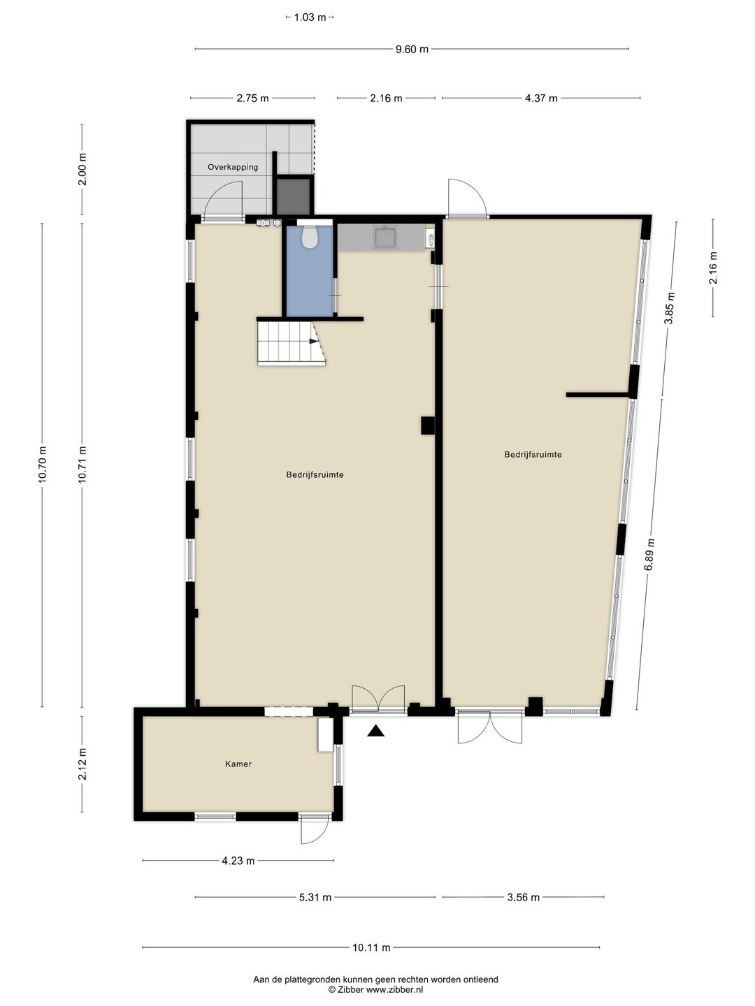 De begane grond is verdeeld in twee ruime bedrijfsruimtes met daarnaast een aparte kamer aan de achterzijde. Eén van de bedrijfsruimtes is voorzien van een eenvoudige keukenopstelling en een toilet. Aan de achterzijde bevindt zich een buitenruimte. Deze buitenruimte is functioneel en kan bijvoorbeeld dienen voor opslag of als praktische buitenplek.