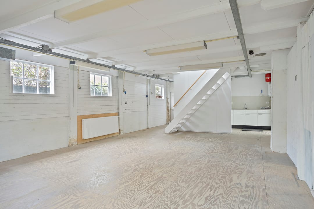 De eerste verdieping bestaat uit een ruime open bedrijfsruimte met een praktische indeling. Daarnaast zijn hier een badkamer en een keuken aanwezig. Verder is er veel bergruimte beschikbaar, wat het gebruik voor werk- of opslagdoeleinden vergemakkelijkt.