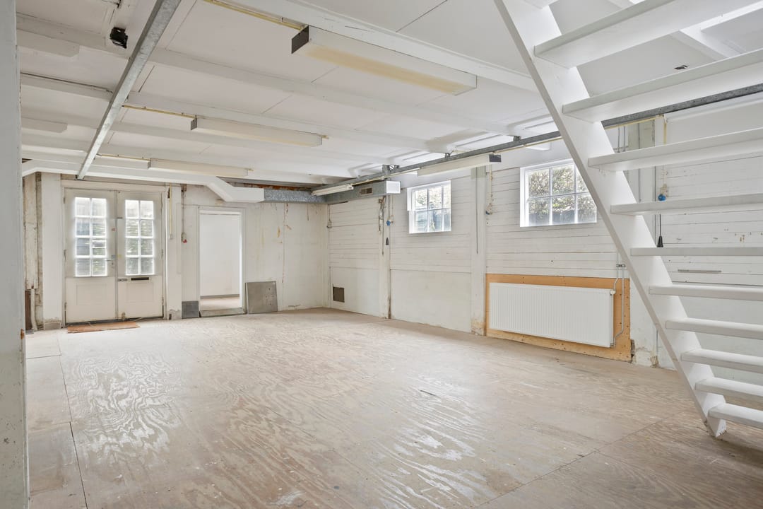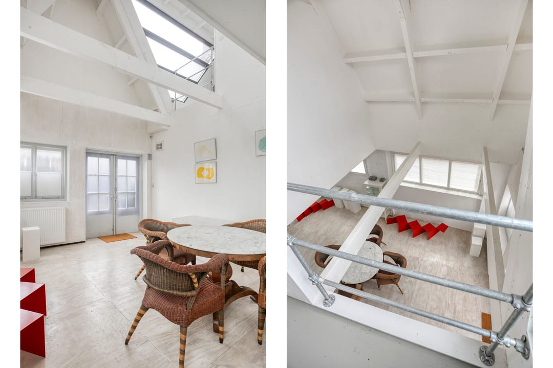 - Eerste verdieping met open bedrijfsruimte;
