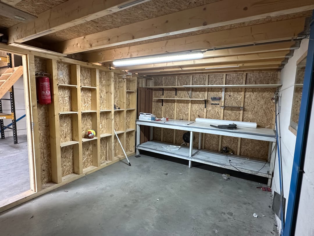 - Houten 'tussenverdieping' gecreëerd (voor meer opslag, of andere doeleinden, bereikbaar met vaste trap);