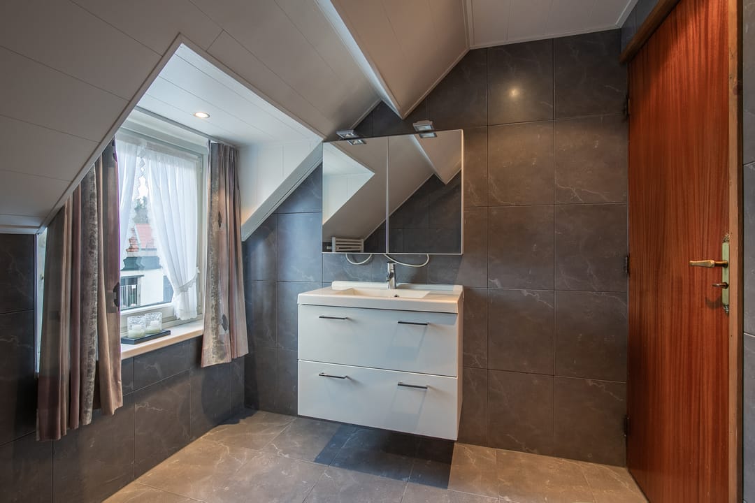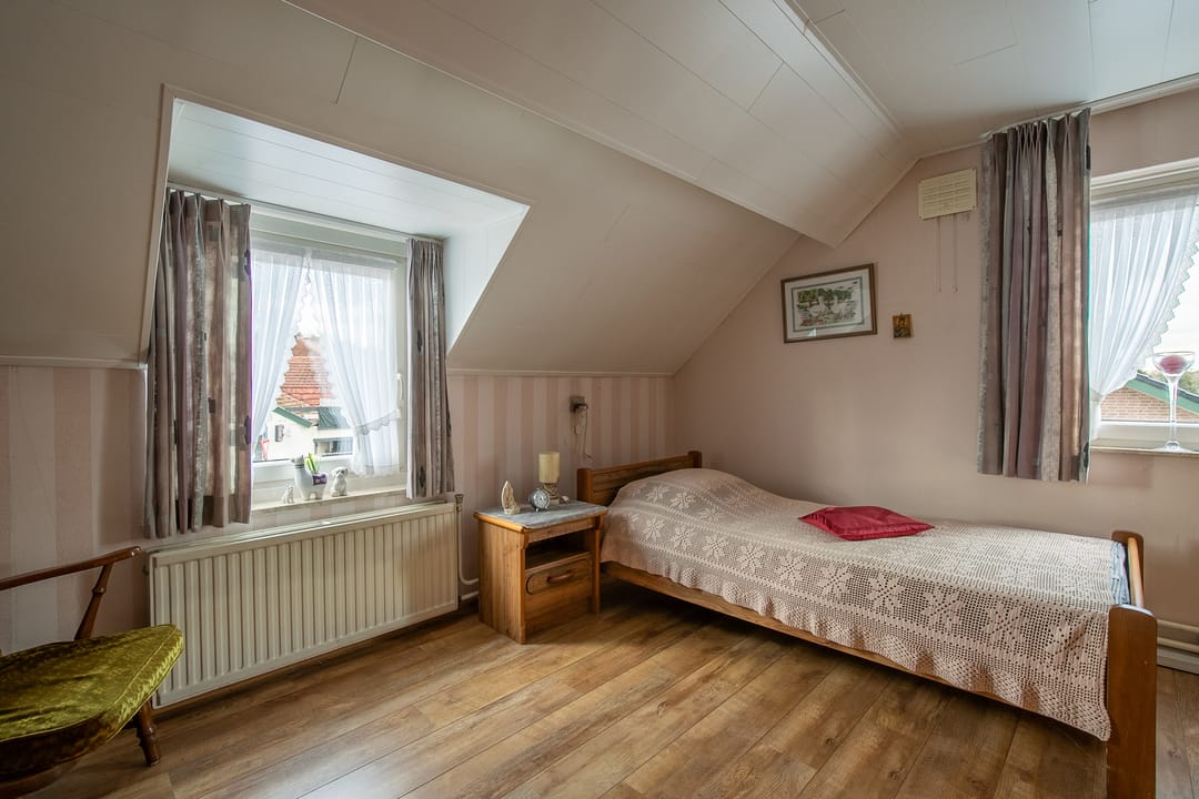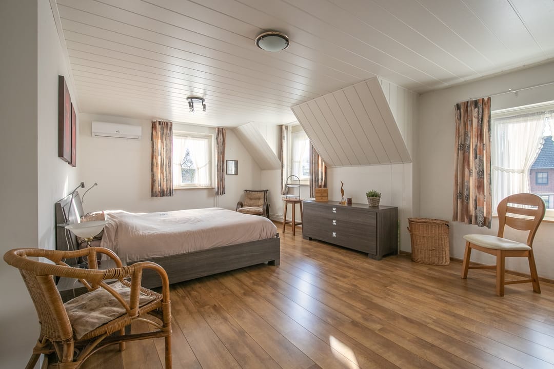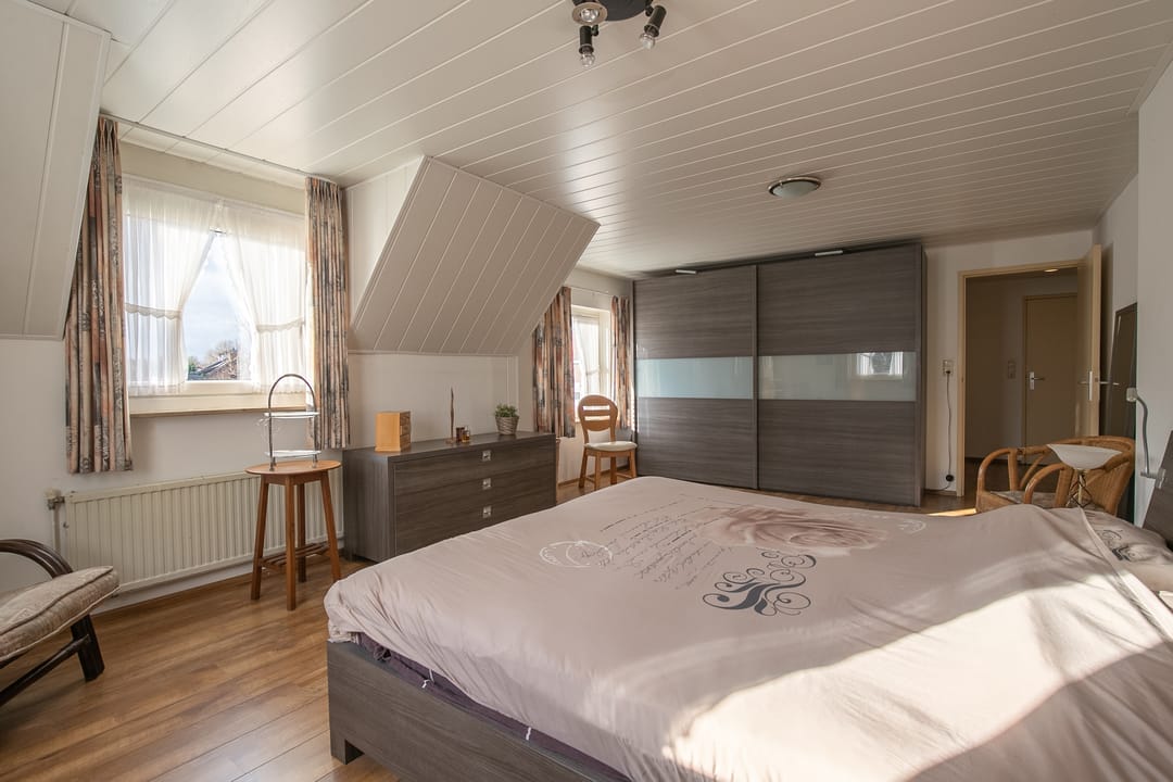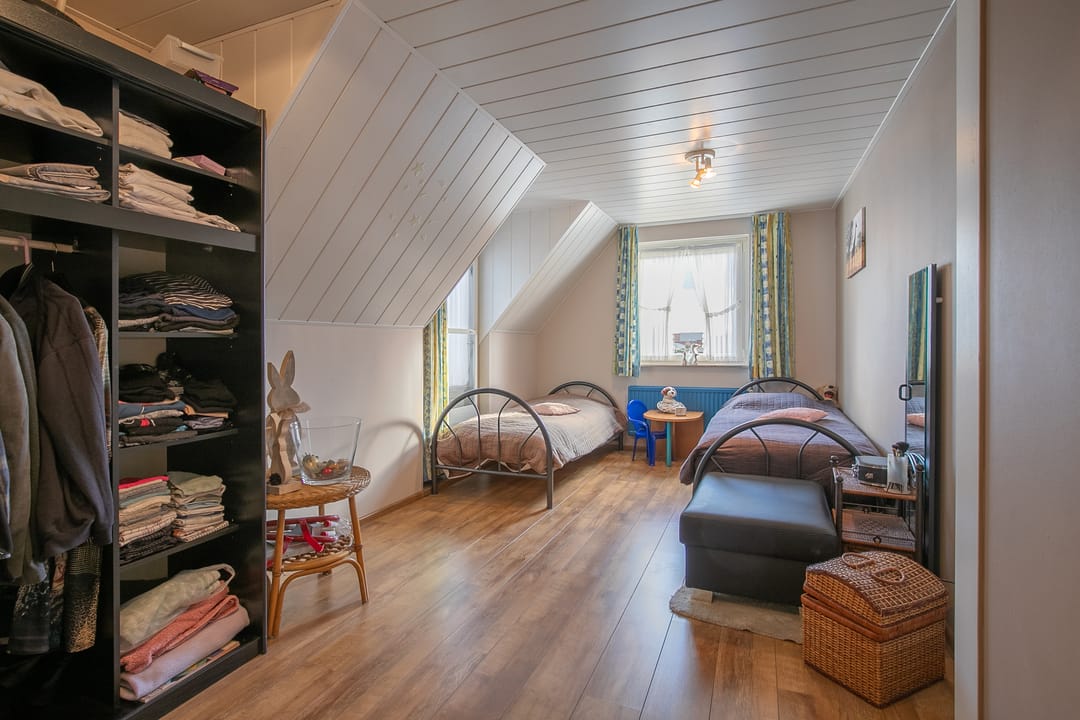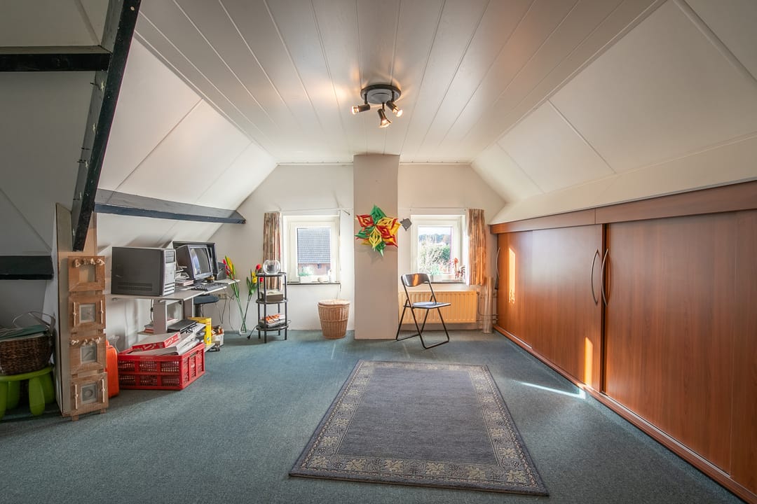 Riante zolderverdieping (ca. 33 m²) met volop mogelijkheden, zoals het realiseren van extra slaapkamers of een hobby-/werkkamer. Aparte technische ruimte met cv-installatie en praktische schuifkasten in de knieschotten.