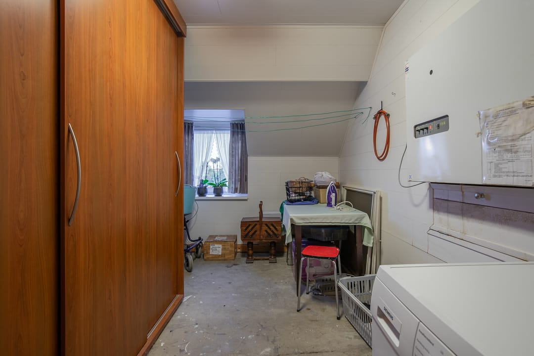 De bijkeuken (ca. 8 m²) is voorzien van witgoedaansluitingen.