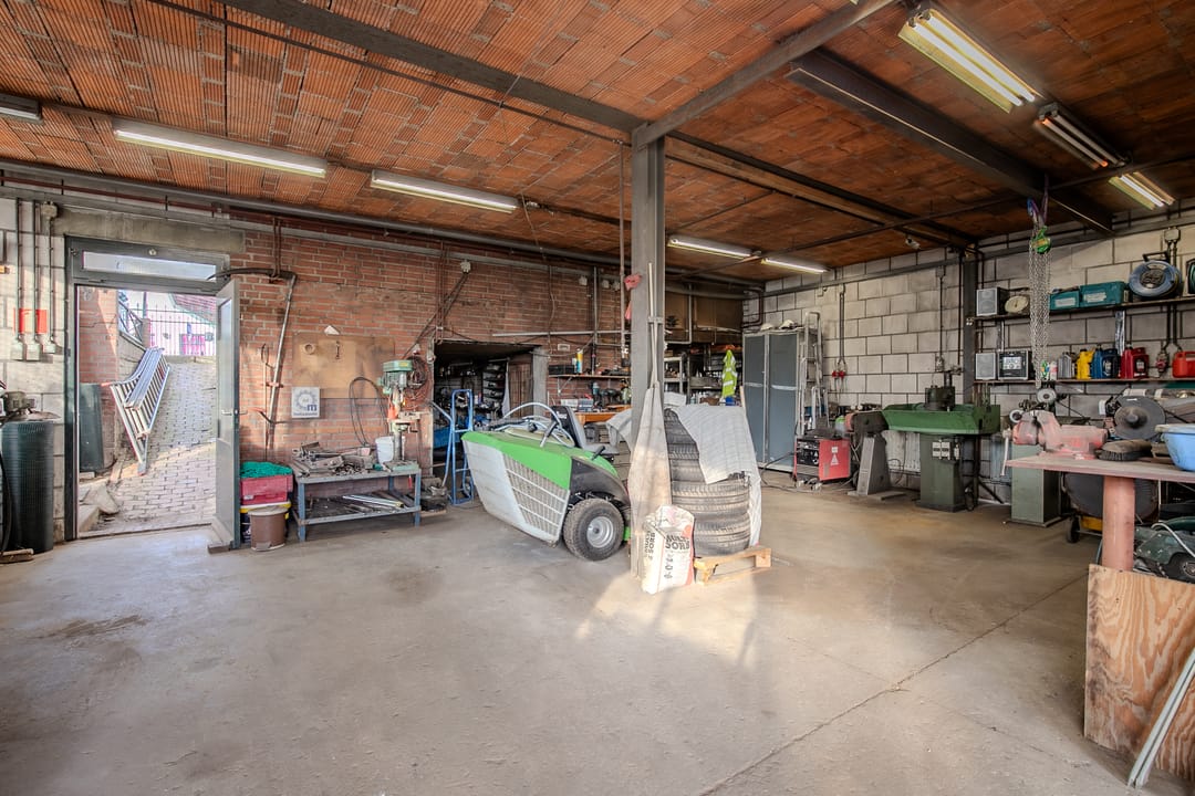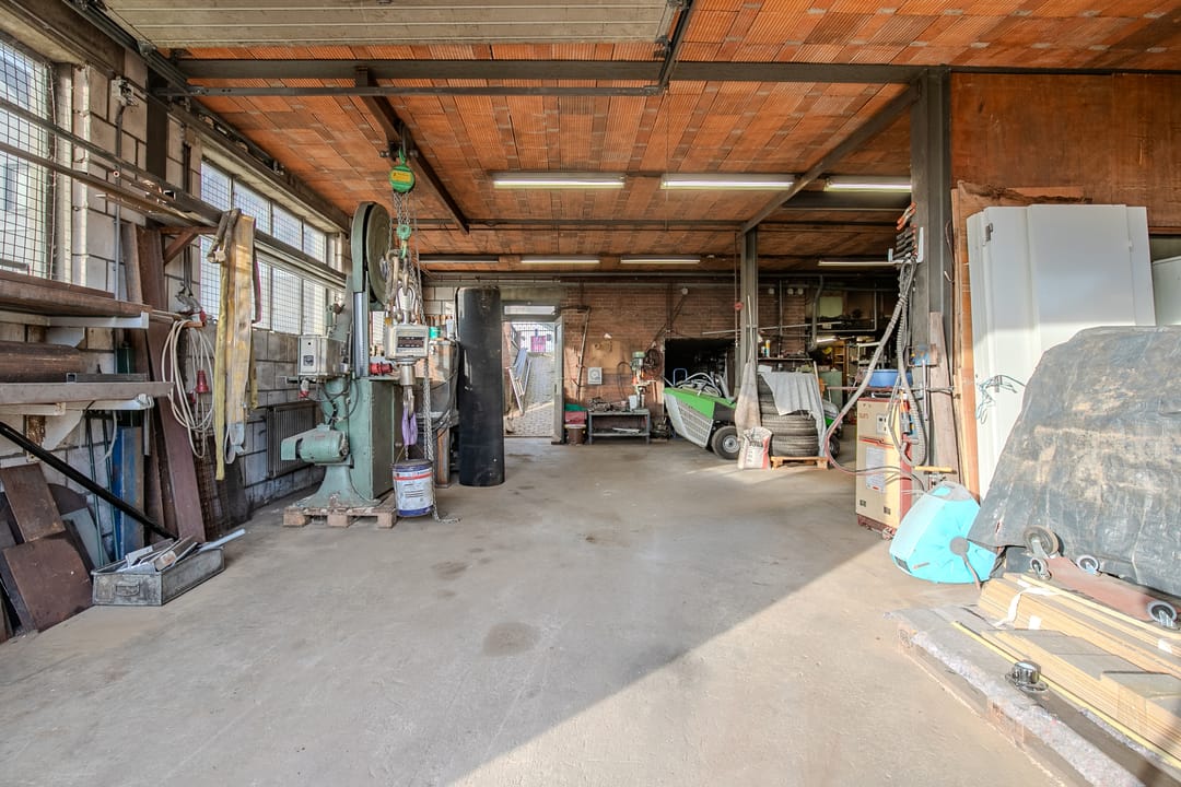 Daarnaast beschikt het object over een multifunctionele loods, ideaal voor een bedrijf aan huis. De loods is verdeeld over twee etages. Op de begane grond bevindt zich een ruime werkruimte, die momenteel is ingericht met diverse machines en opslag, en tevens mogelijkheden biedt voor het realiseren van een kantine.