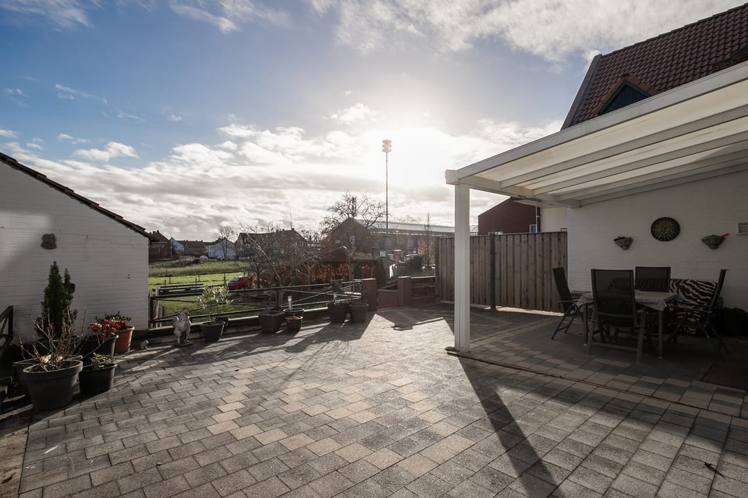De tuinen vormen samen een uitzonderlijk royaal en diep perceel, grotendeels omsloten en zuidoostelijk georiënteerd, waardoor u de gehele dag van de zon kunt genieten. De tuin is ingericht met meerdere terrassen, gazon, beplanting en een overdekt terras. Ideaal voor gezinnen, tuinliefhebbers of het realiseren van aanvullende bebouwing zoals een mantelzorgwoning.