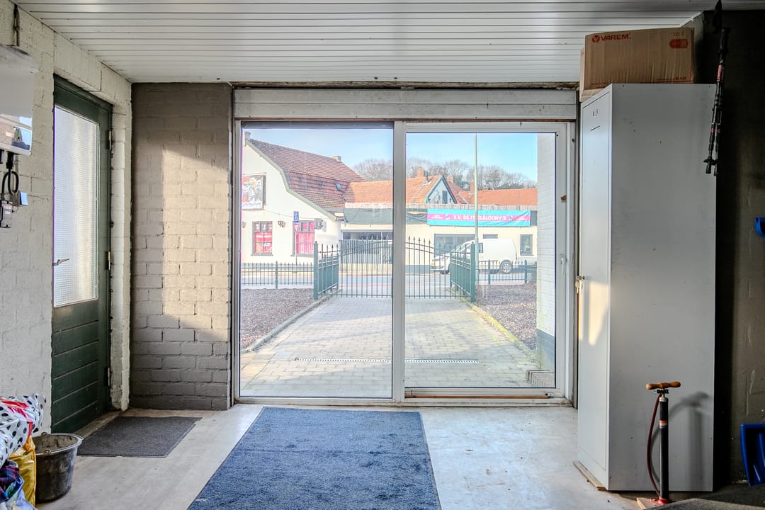 De eerste etage, die op straatniveau ligt, is verdeeld in twee ruimtes. Via een entree met een groot schuifkozijn kom je binnen in een lichte ruimte die zich uitstekend leent als kantoor, kapperszaak, nagelsalon of andere dienstverlenende activiteiten. Op deze etage zijn een apart toilet en een douche aanwezig. Vanuit deze ruimte is er bovendien toegang tot de zolder, wat extra opslag- of gebruiksmogelijkheden biedt.