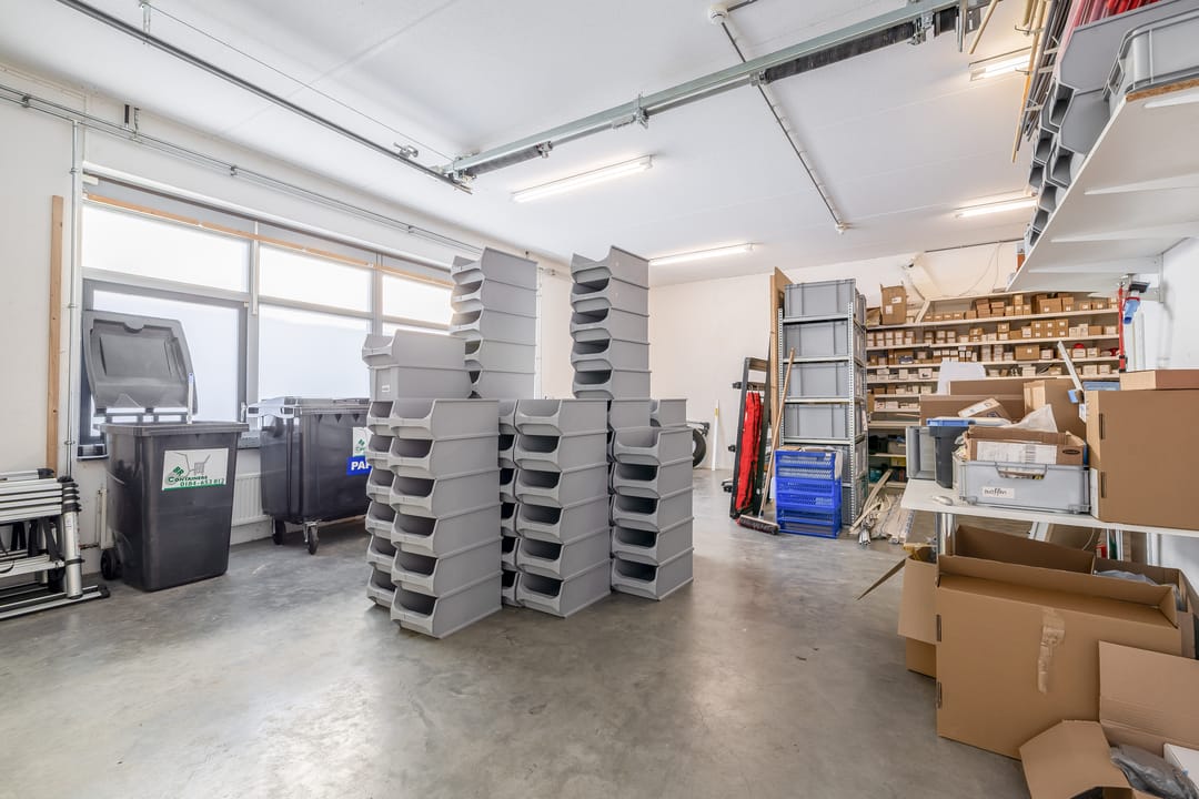 - Airconditioning, mechanische ventilatie, overheaddeuren, krachtstroom, betonvloer, toilet en pantry
