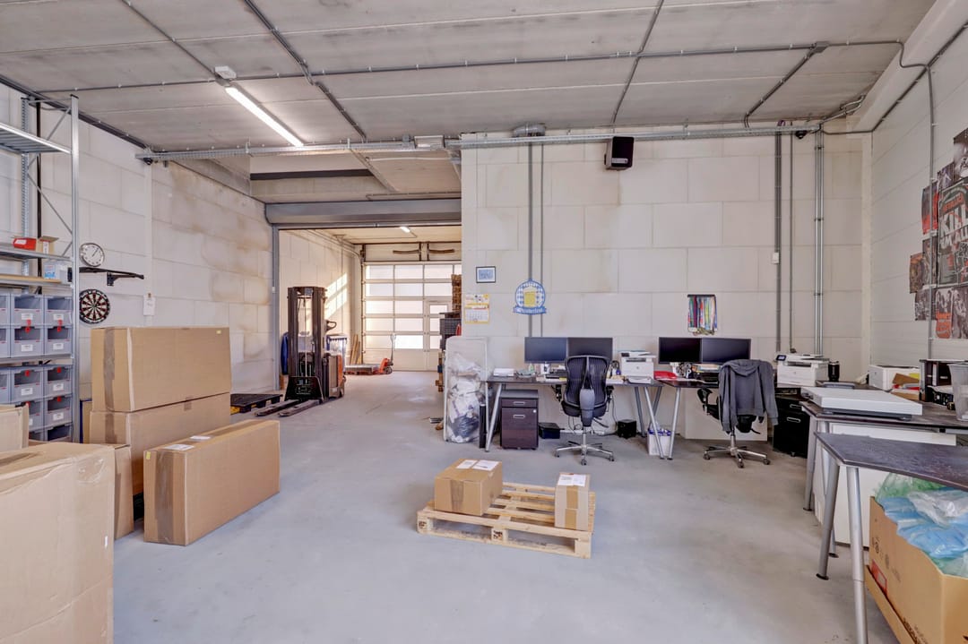 - Overheaddeuren, krachtstroom, betonvloer, toilet, pantry, airconditioning, mechanische ventilatie, inbouwarmaturen en te openen ramen