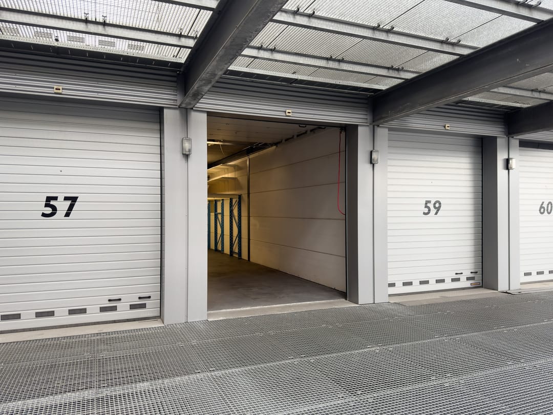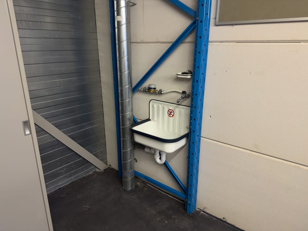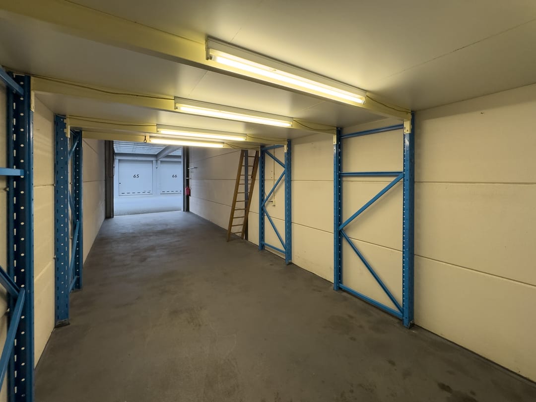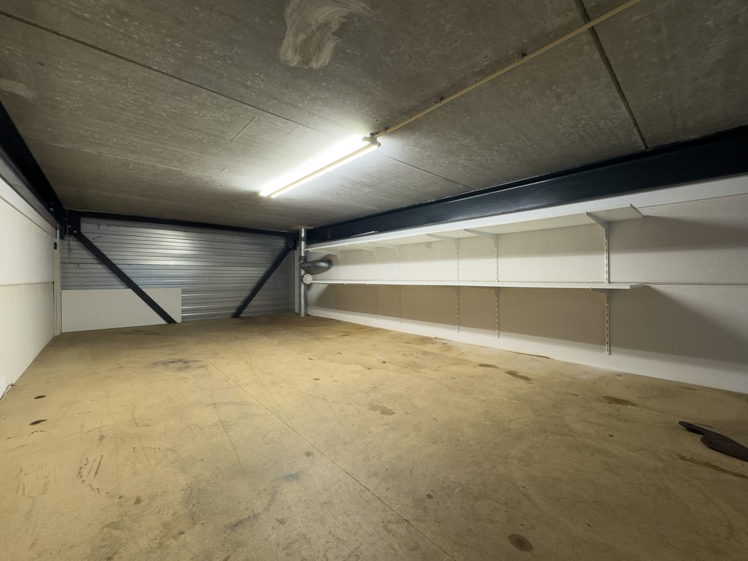 De ruimte beschikt verder over een elektrisch bedienbare overheaddeur, inclusief extra slotbeveiliging, een gewapende betonvloer (ca. 500 kg/m²), eigen elektra met tussenmeter en een waterpunt met spoelbak. Dankzij de nette afwerking en efficiënte indeling is dit een zeer bruikbare unit voor zowel ondernemers als particulieren.