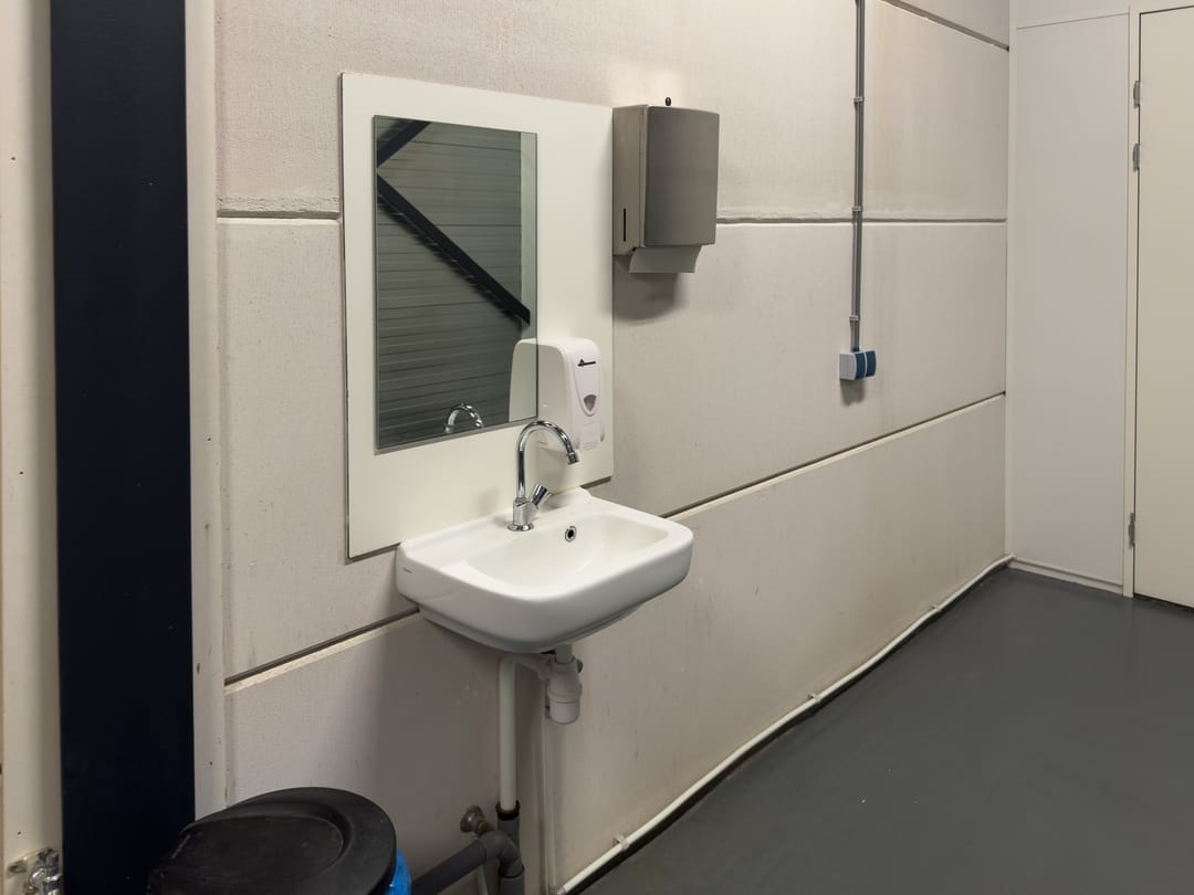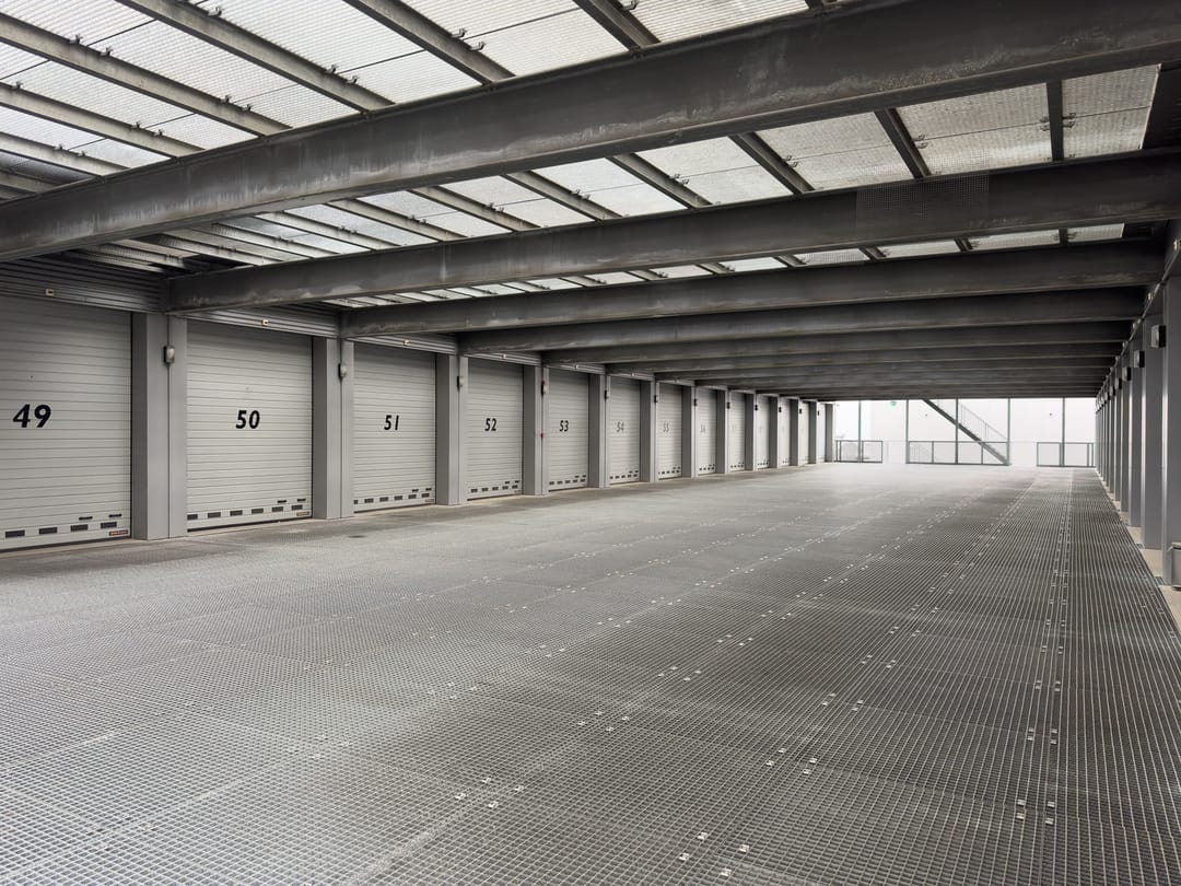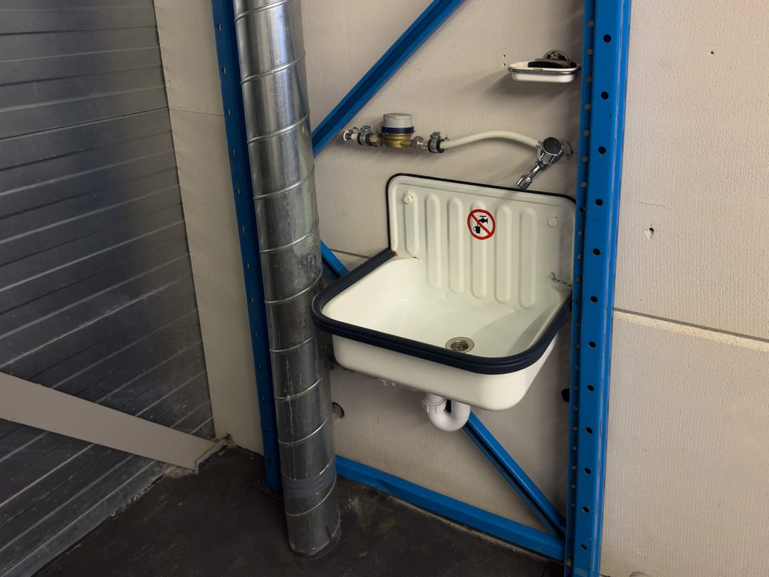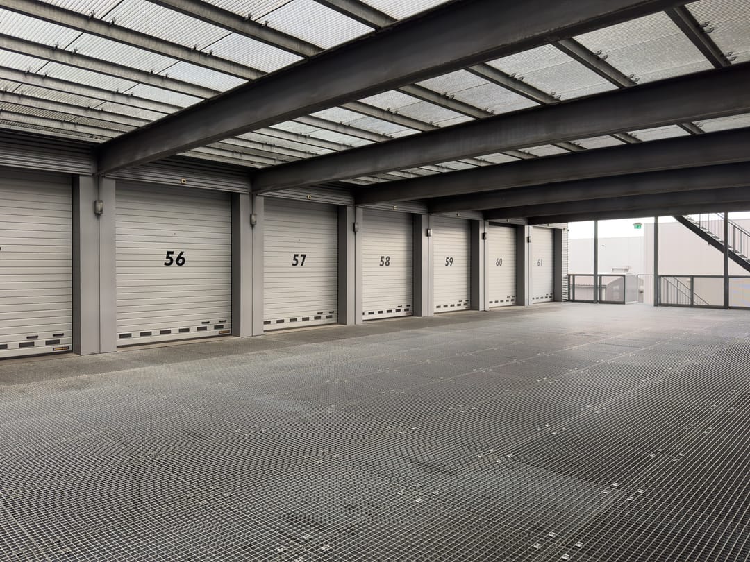 De ruimte beschikt verder over een elektrisch bedienbare overheaddeur, inclusief extra slotbeveiliging, een gewapende betonvloer (ca. 500 kg/m²), eigen elektra met tussenmeter en een waterpunt met spoelbak. Dankzij de nette afwerking en efficiënte indeling is dit een zeer bruikbare unit voor zowel ondernemers als particulieren.