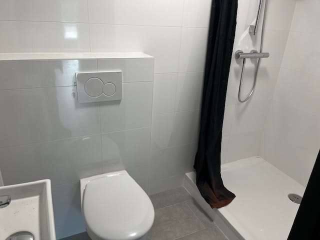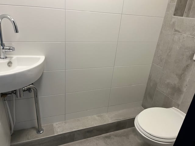 - Betegelde toiletruimte v.v. sanitair/aparte doucheruimte