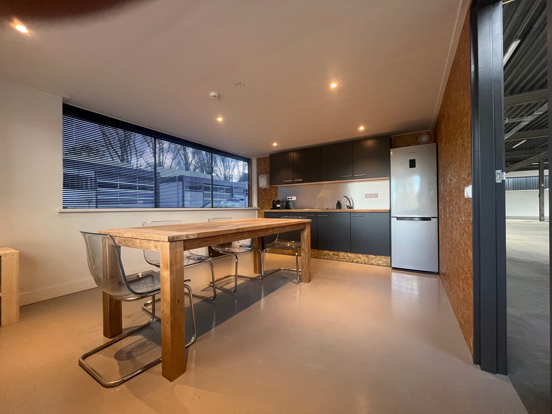 De ruimte is praktisch ingedeeld en beschikt over een kleine kantoorruimte annex kantineruimte v.v. een pantry en een dubbele toiletgroep.