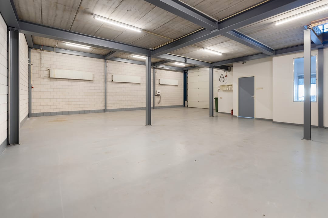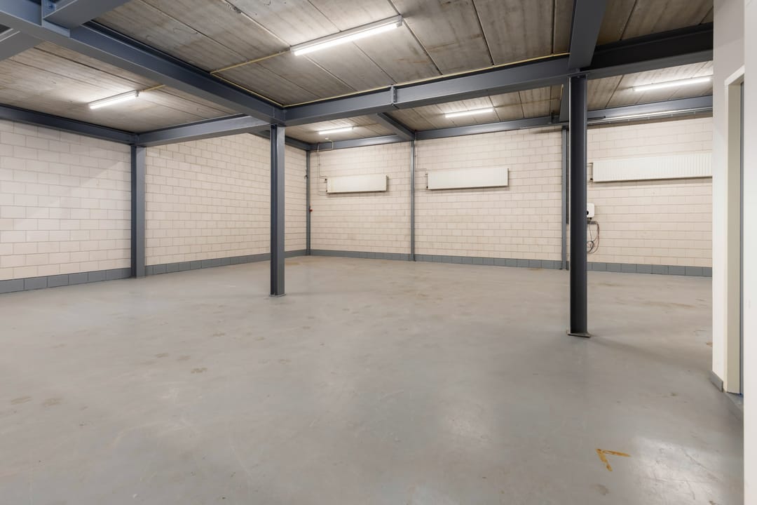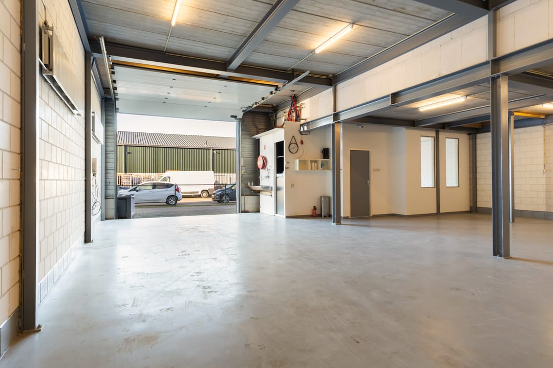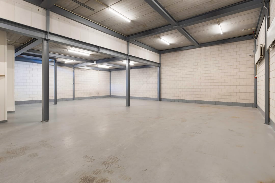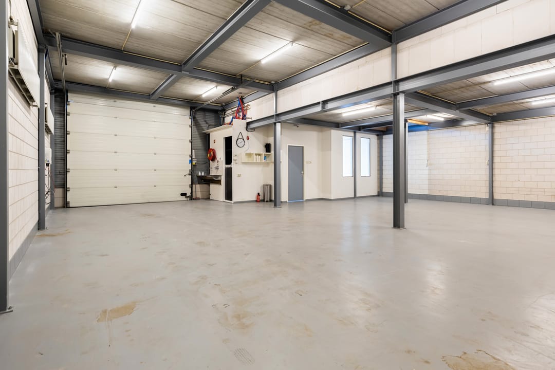 - Overheaddeuren, krachtstroom, betonvloer, heater en toilet