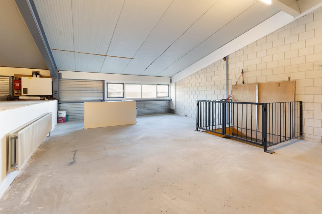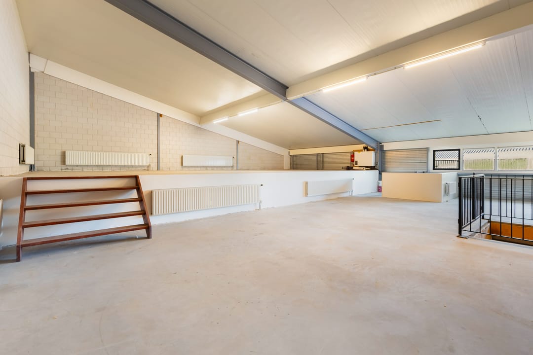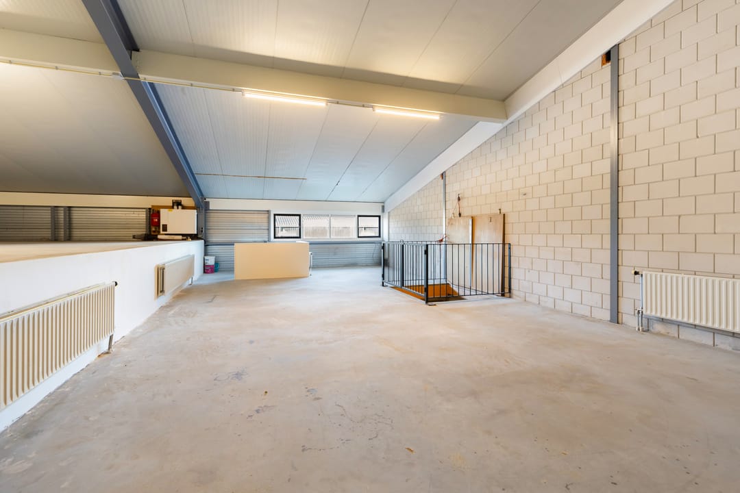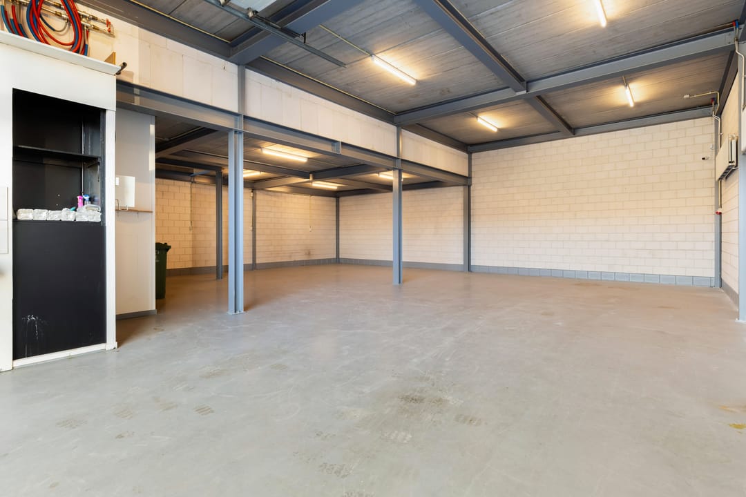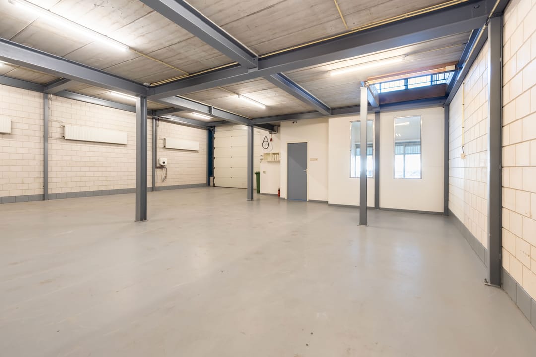 - Overheaddeuren, krachtstroom, betonvloer, heater en toilet