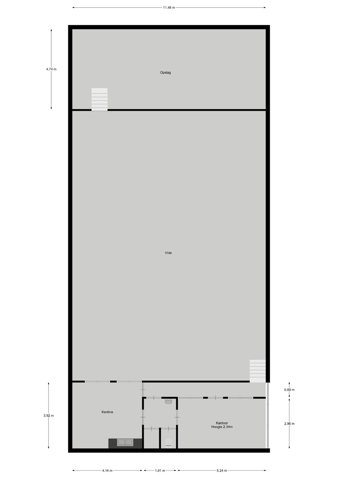 Functionele bedrijfsunit met een totaal verhuurbare oppervlakte van circa 385m², waarvan circa 285m² op de begane grond, en totaal 100m² verdeeld over 2 entresollen te weten 54m² opslag en 45m² kantoor (16m²), kantine met pantry (16m²) en toilettengroep (6m²). Op het buitenterrein is parkeergelegenheid.