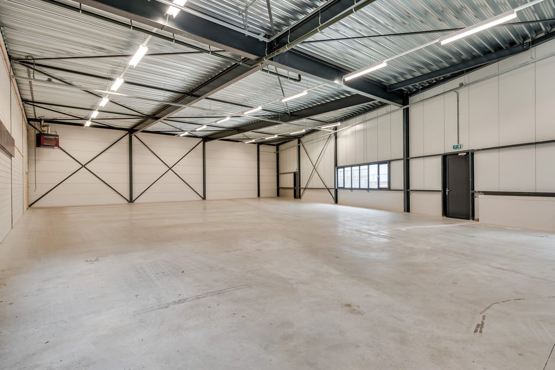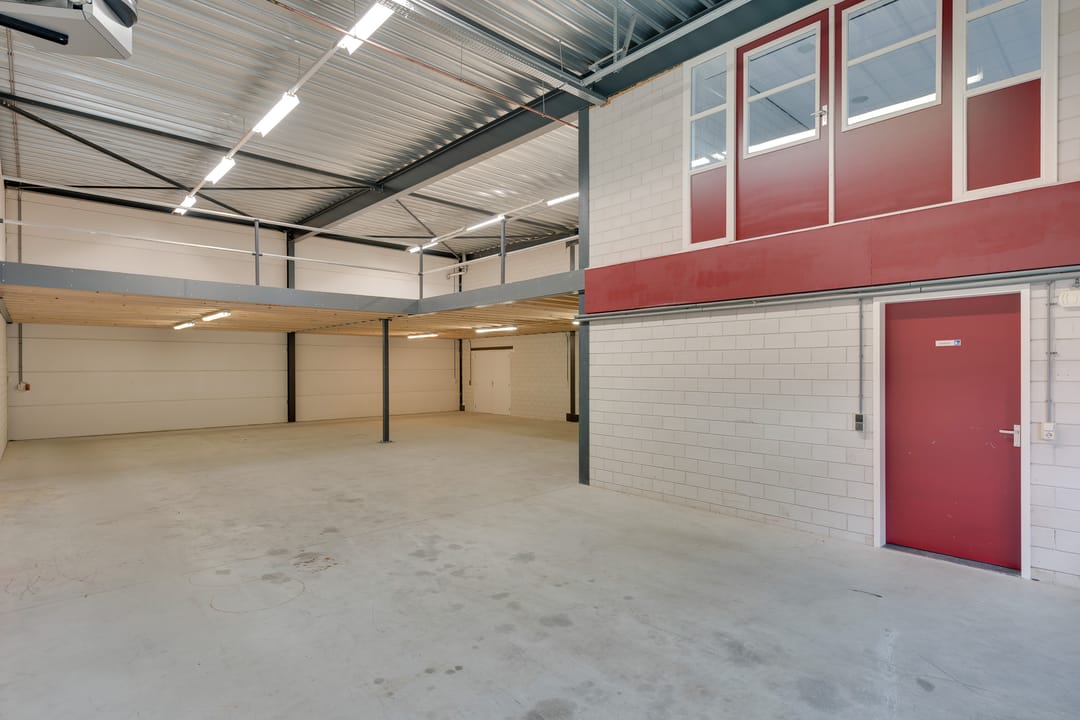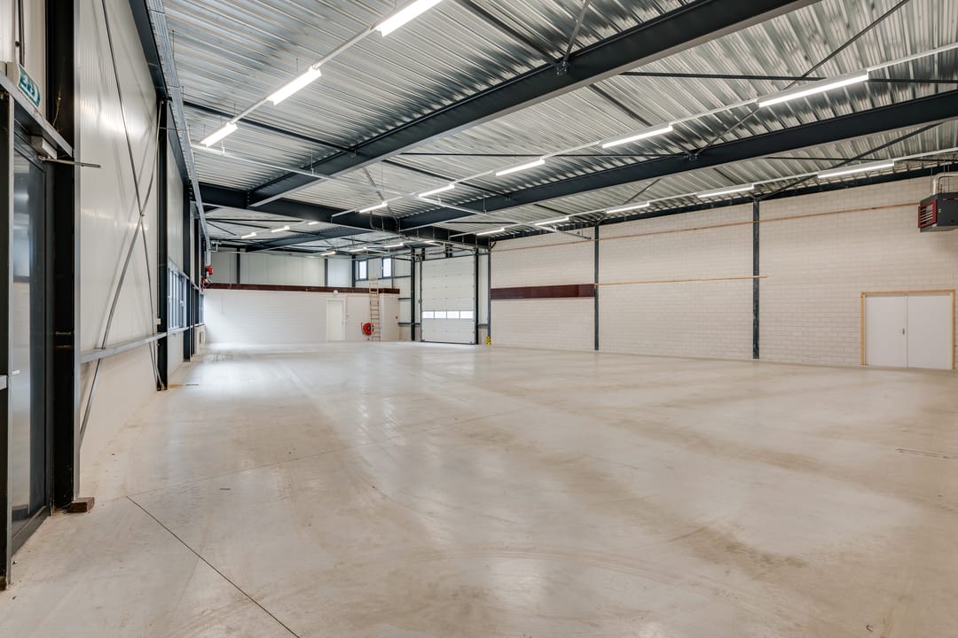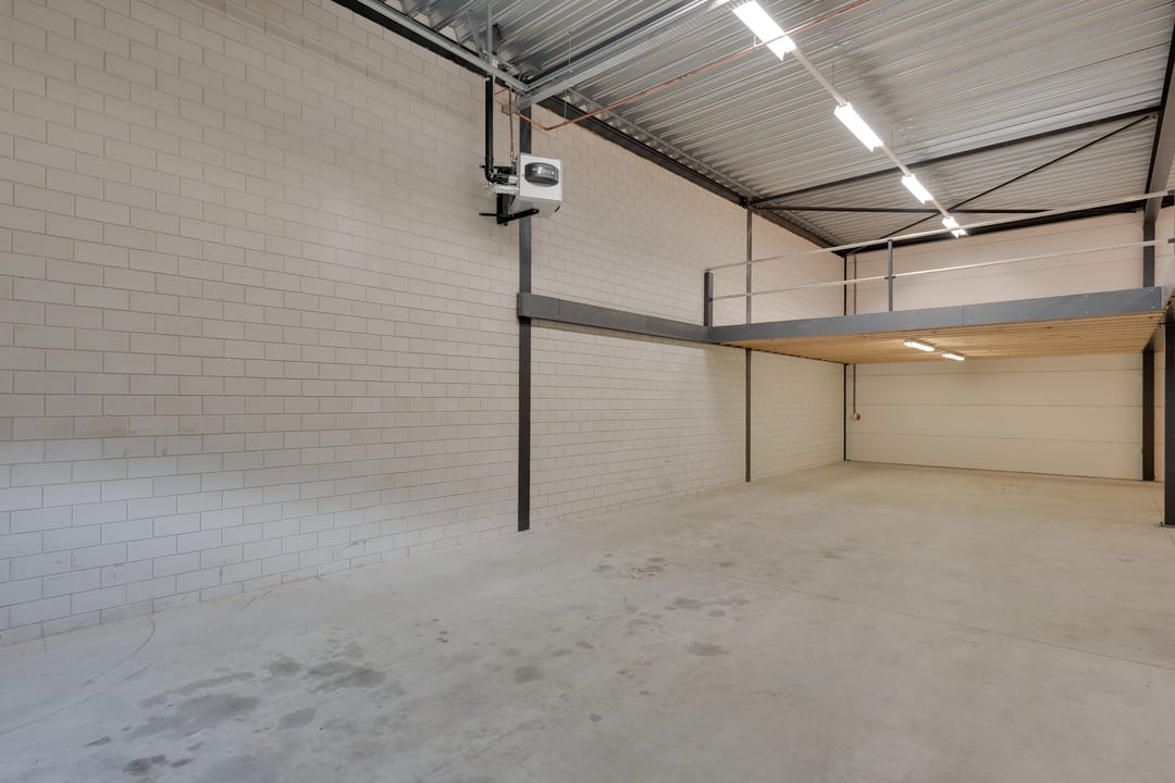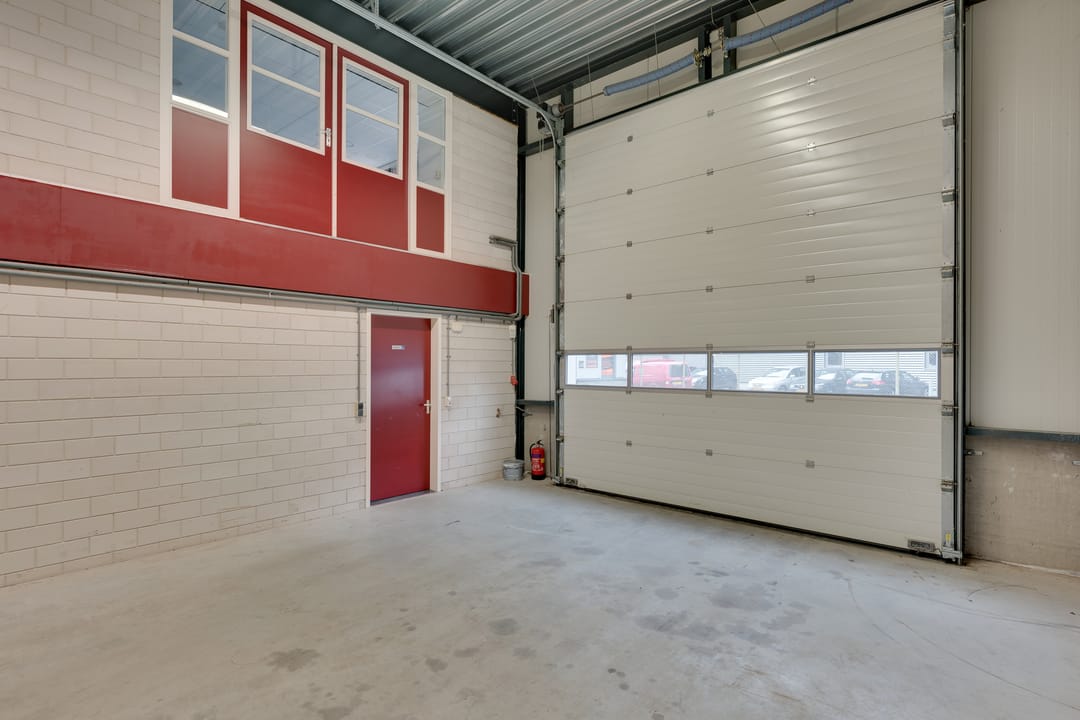De bedrijfsruimte is optimaal geïsoleerd en voorzien van een sectionaalpoort aan de voorzijde. De ruimte heeft een vrije hoogte van circa 4,88 meter en is uitgevoerd met een betonvloer van circa 18 centimeter dik, geschikt voor een belasting van ongeveer 1.250 kilogram per vierkante meter. Verwarming vindt plaats via een heater en de ruimte is uitgerust met een alarminstallatie.