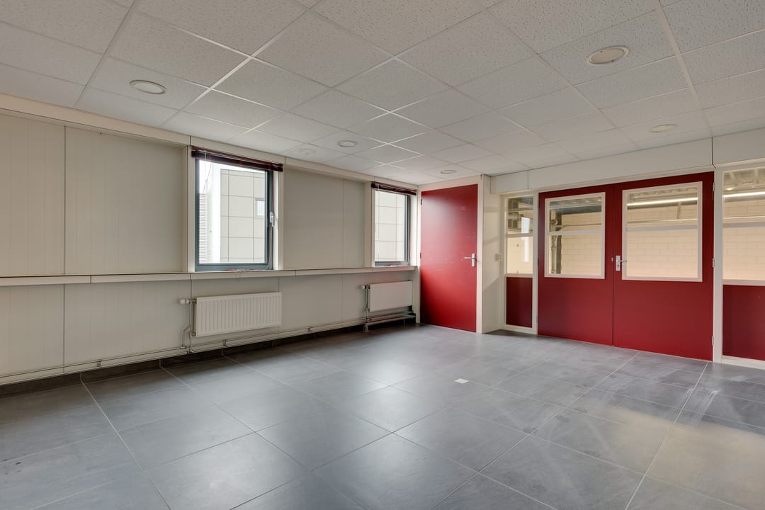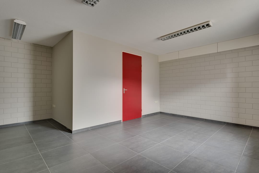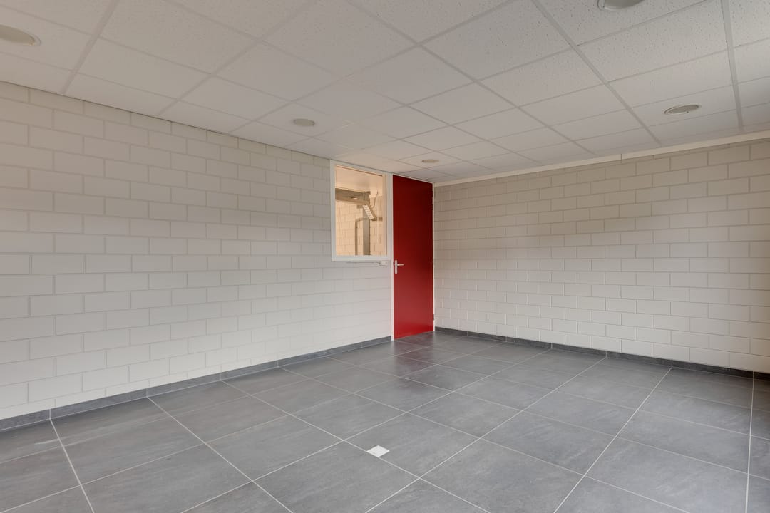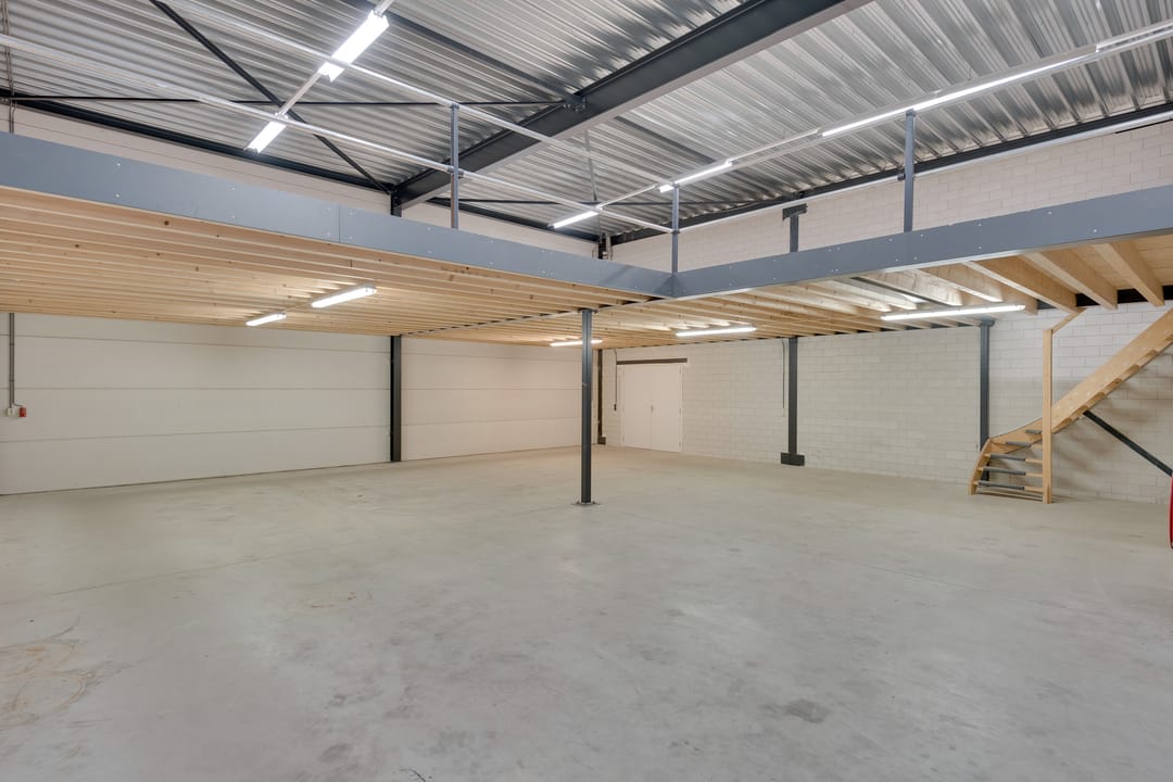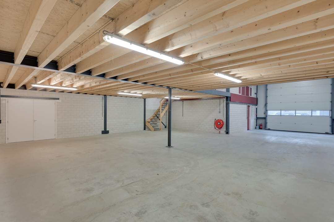 De bedrijfsruimte is optimaal geïsoleerd en voorzien van een sectionaalpoort aan de voorzijde. De ruimte heeft een vrije hoogte van circa 4,88 meter en is uitgevoerd met een betonvloer van circa 18 centimeter dik, geschikt voor een belasting van ongeveer 1.250 kilogram per vierkante meter. Verwarming vindt plaats via een heater en de ruimte is uitgerust met een alarminstallatie.