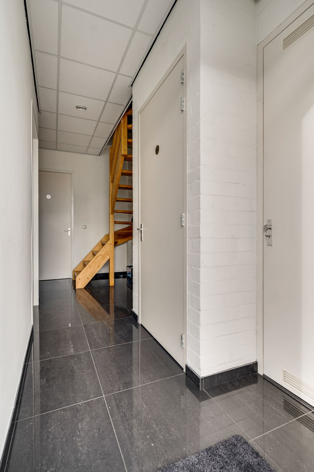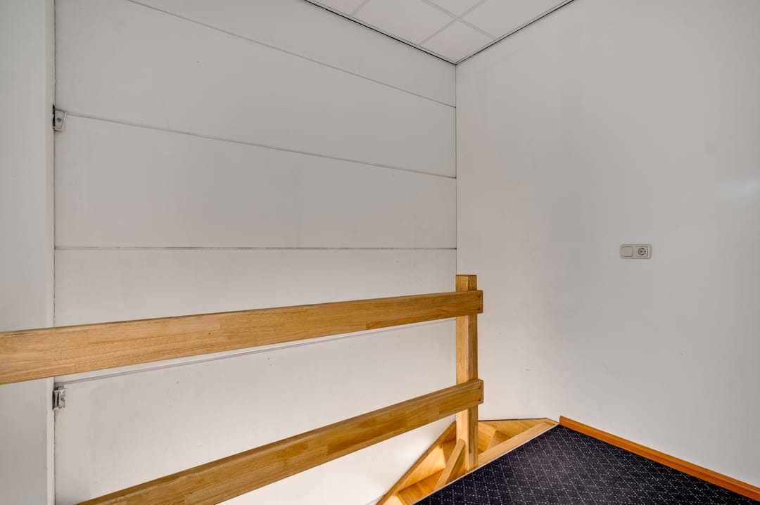 Op de eerste verdieping ligt een tweede kantoor van ca. 22 m². Deze ruimte is afgewerkt met vloerbedekking en een systeemplafond met inbouwverlichting en ramen aan de voorzijde. Het kantoor is voorzien van radiatoren en airconditioning