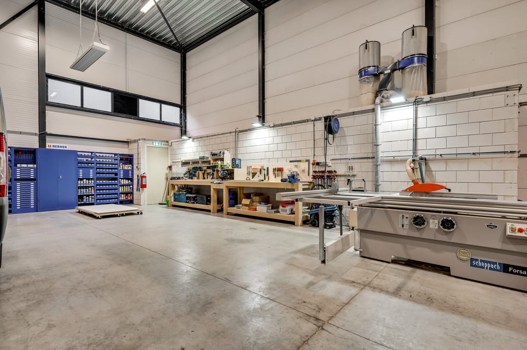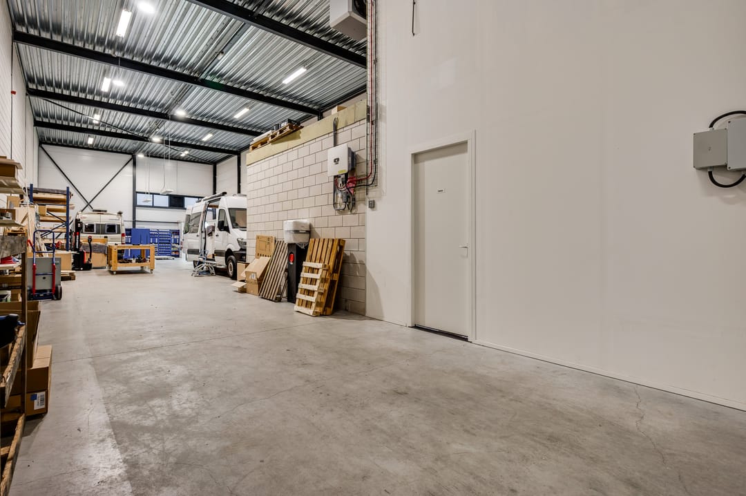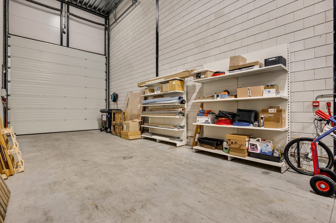 - Overheaddeuren, krachtstroom, betonvloer, heater, toilet, pantry, airconditioning, inbouwarmaturen en te openen ramen