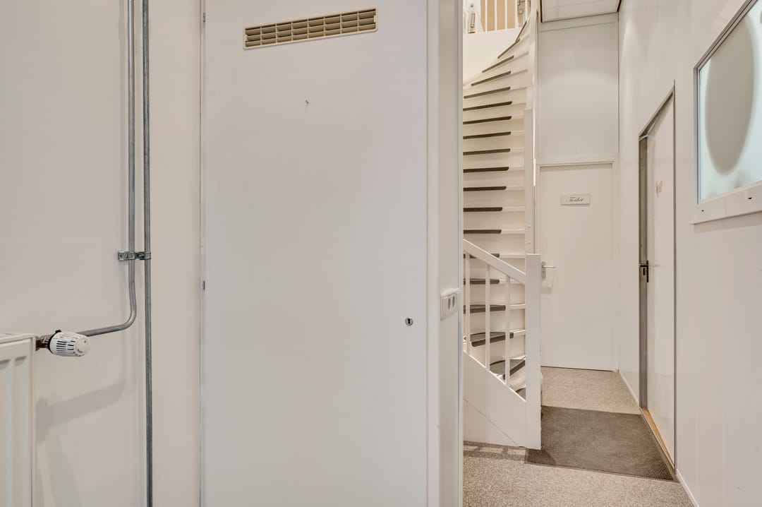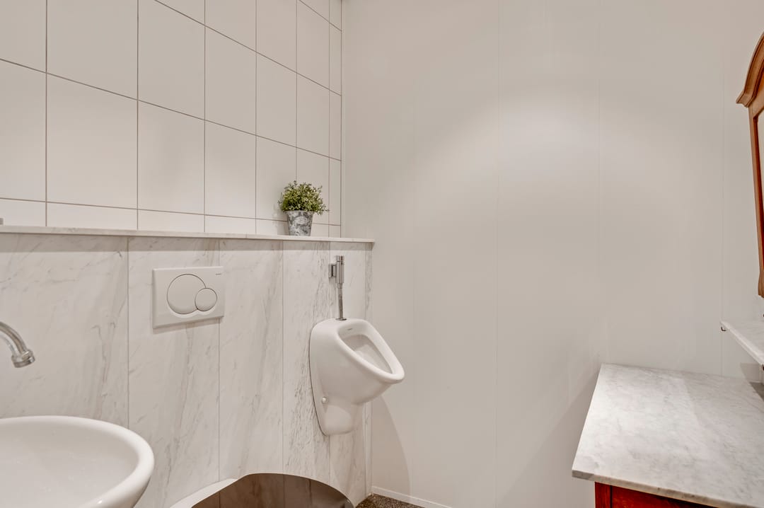 Via de entree kom je in de hal met meterkast en vaste trap naar de eerste verdieping. Hier bevindt zich ook de toiletruimte met toilet, urinoir en mechanische ventilatie. De voorzijde van de bedrijfsruimte is afgewerkt met een zwevende pvc-vloer, systeemplafond en ledverlichting en beschikt over kabelgoten met databekabeling en glasvezel. Daarnaast is hier een elektrische sectionaalpoort aanwezig, wat het laden en lossen eenvoudig maakt. Via een deur bereik je het achterste gedeelte, uitgevoerd met een betonvloer en betonnen wanden en platen, geschikt voor werkplaats- of opslaggebruik. De indeling is flexibel en kan worden aangepast, waardoor de ruimte voor verschillende doeleinden geschikt is.