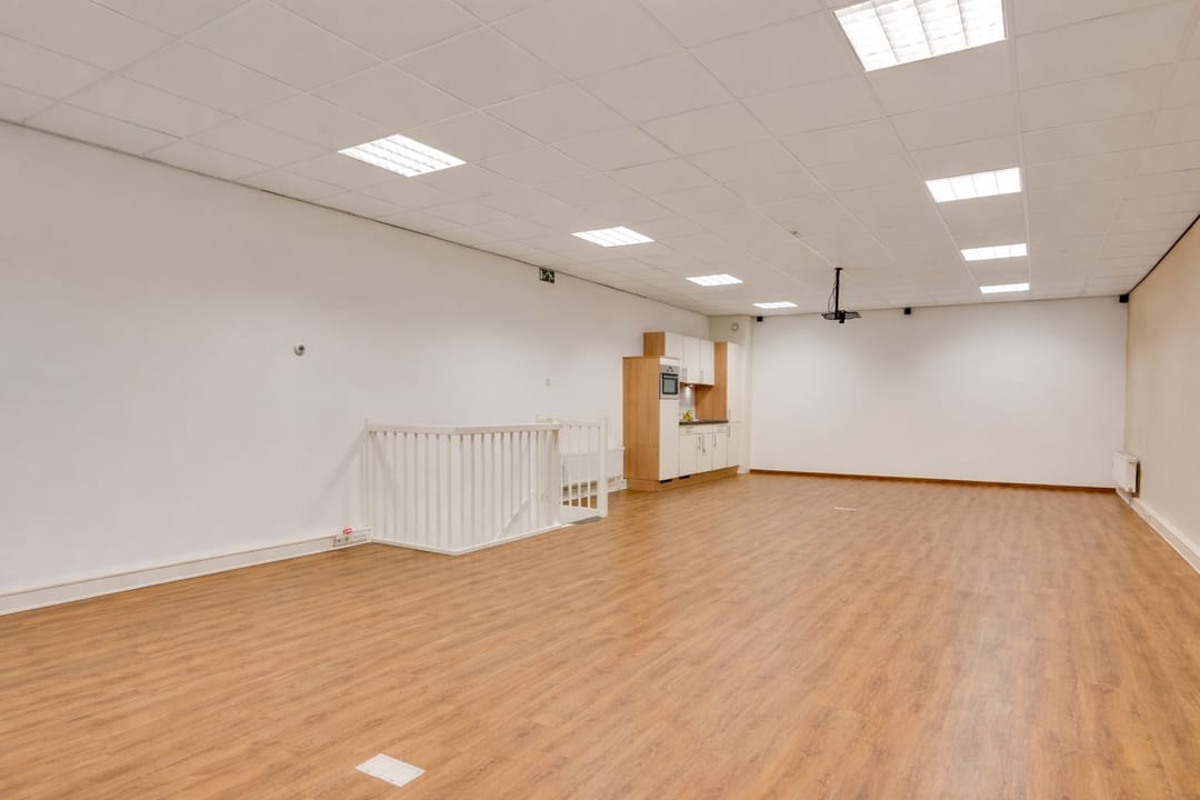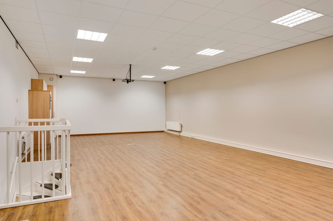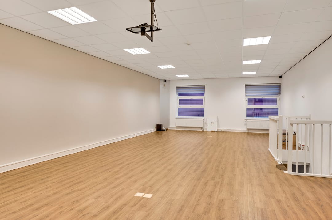 De eerste verdieping heeft een oppervlakte van ca. 72 m² en is volledig ingericht als kantoorruimte. De open indeling maakt het eenvoudig om werkplekken en een vergaderruimte te realiseren.
