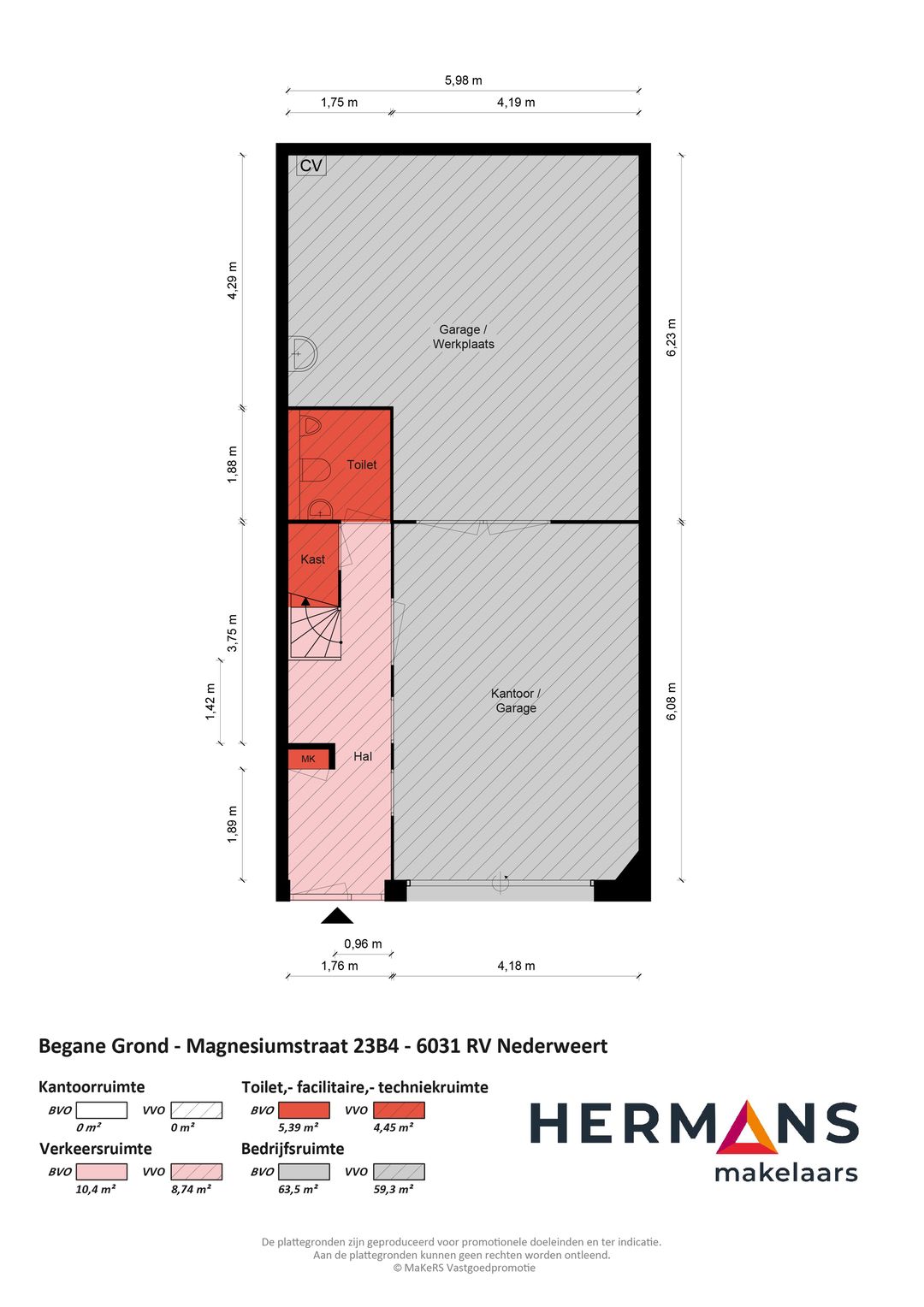 Aan de Magnesiumstraat 23B4 in Nederweert ligt deze bedrijfsunit met een totale oppervlakte van ca. 145 m². Het object is verdeeld over twee verdiepingen en bestaat uit een bedrijfsruimte op de begane grond en een volledig ingerichte kantoorverdieping op de eerste verdieping. De indeling maakt het pand geschikt voor diverse vormen van ondernemen, waarbij werken, opslag en kantoorfuncties overzichtelijk zijn gecombineerd binnen één object.