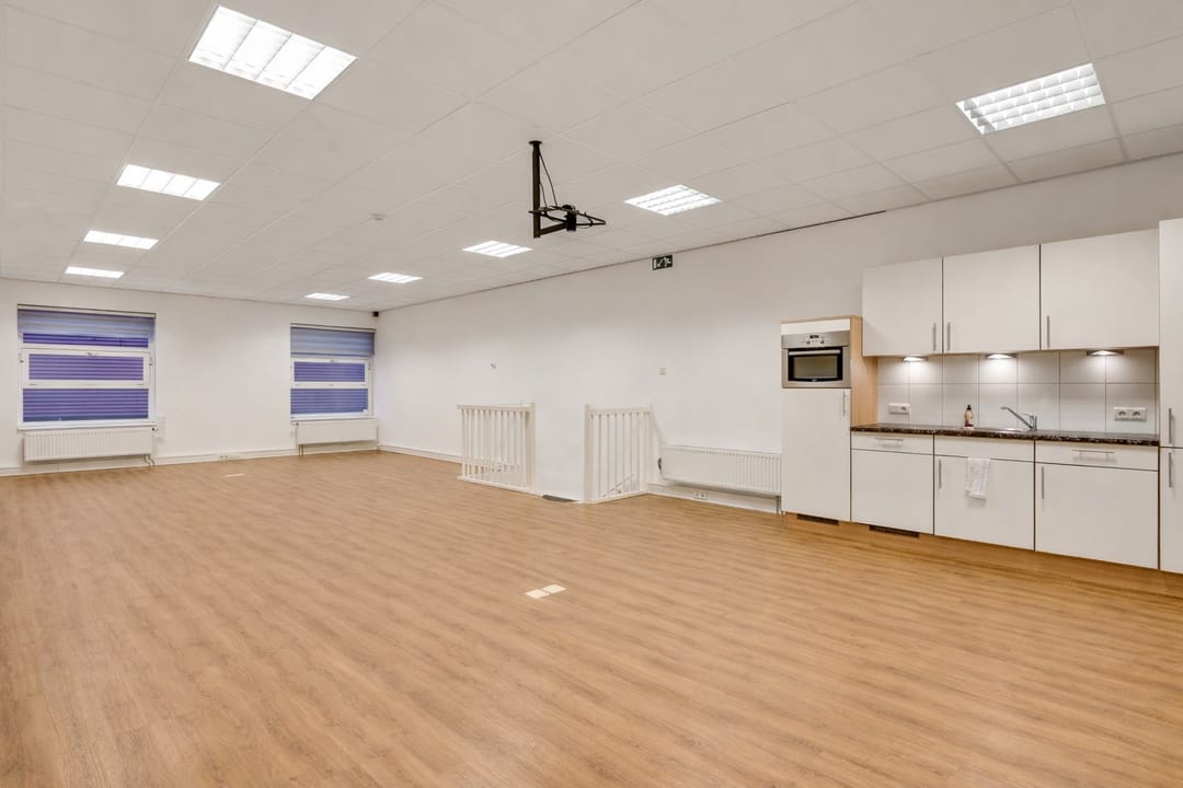 De verdieping is afgewerkt met een pvc-vloer, systeemplafond en tl-verlichting die apart te schakelen is. Verwarming vindt plaats via radiatoren en er is mechanische ventilatie aanwezig. De kozijnen zijn voorzien van isolerend glas.