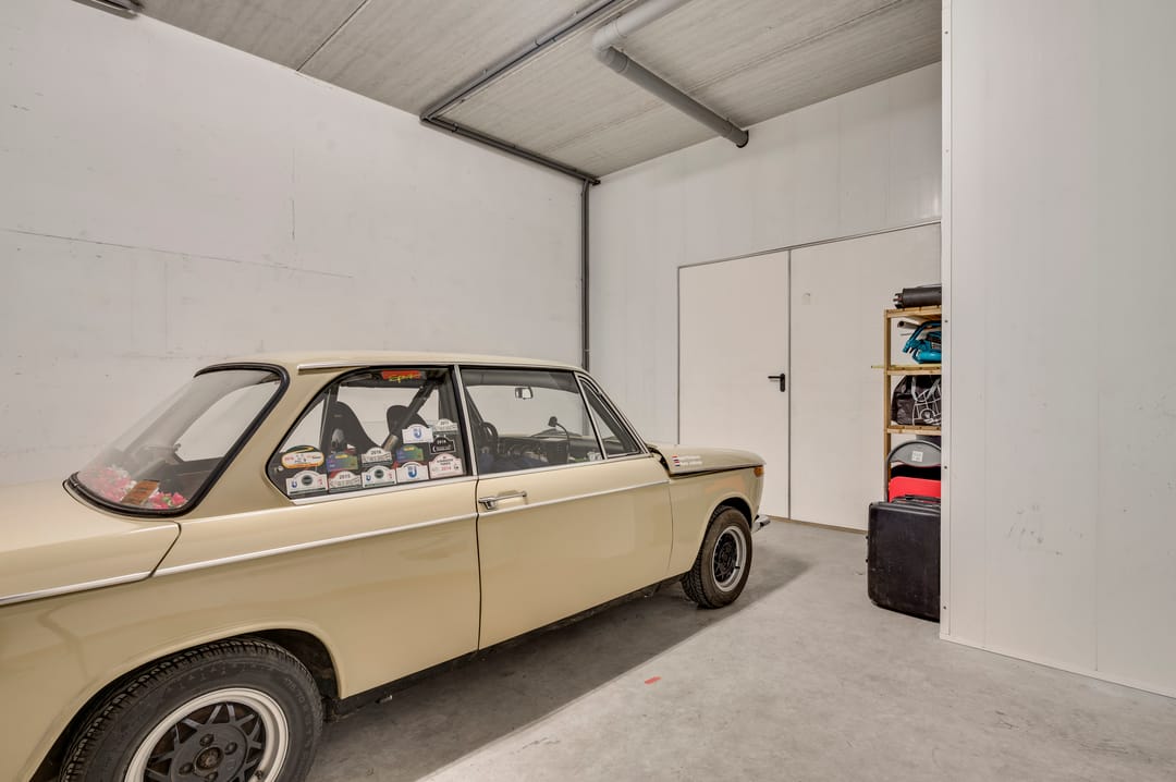 - Overheaddeuren, krachtstroom, betonvloer, toilet, pantry, inbouwarmaturen en te openen ramen