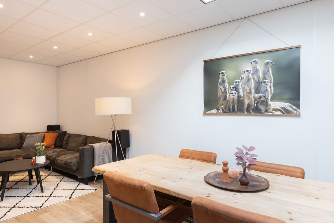 Op de begane grond bevindt zich een royale werkruimte met diverse gebruiksmogelijkheden.