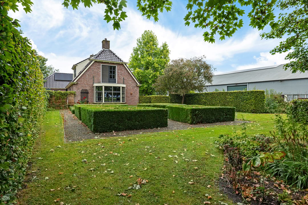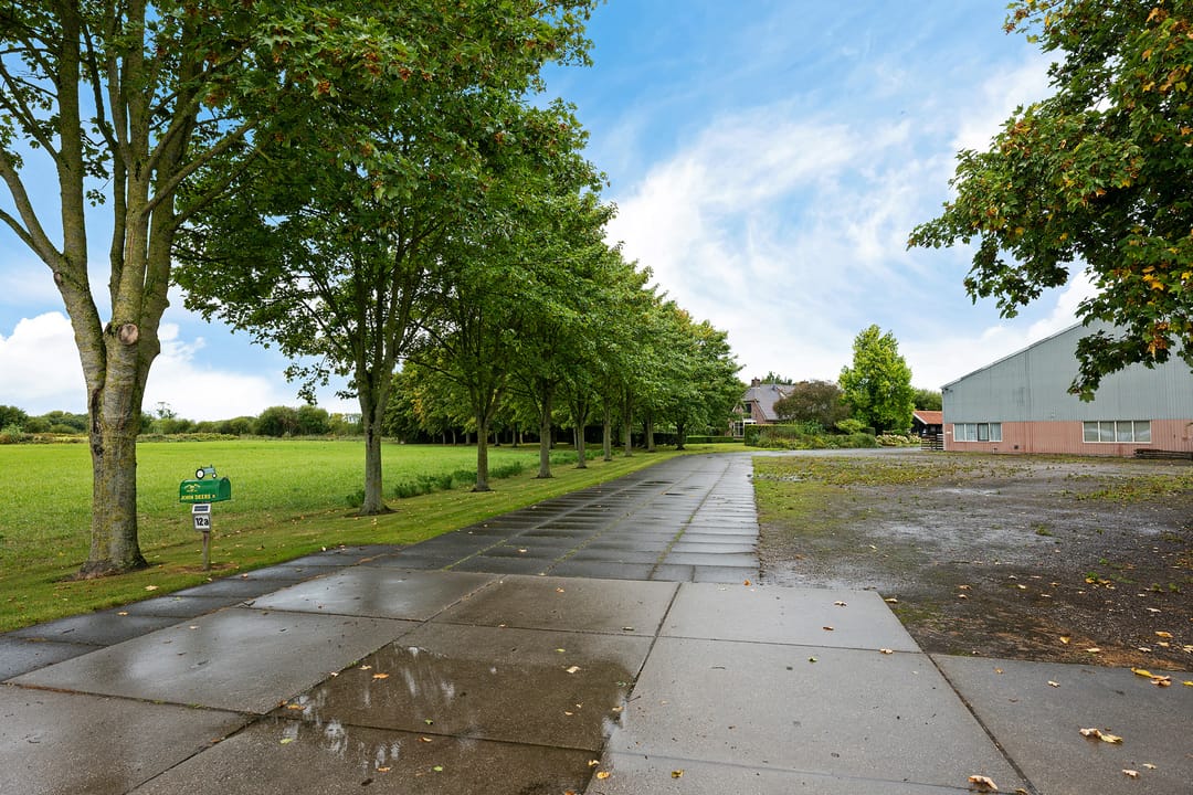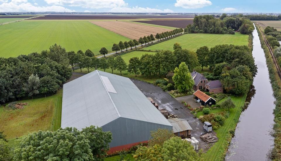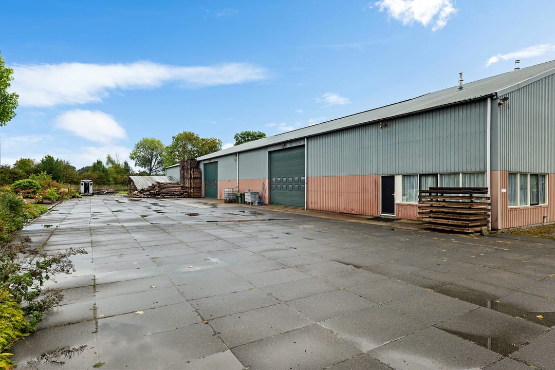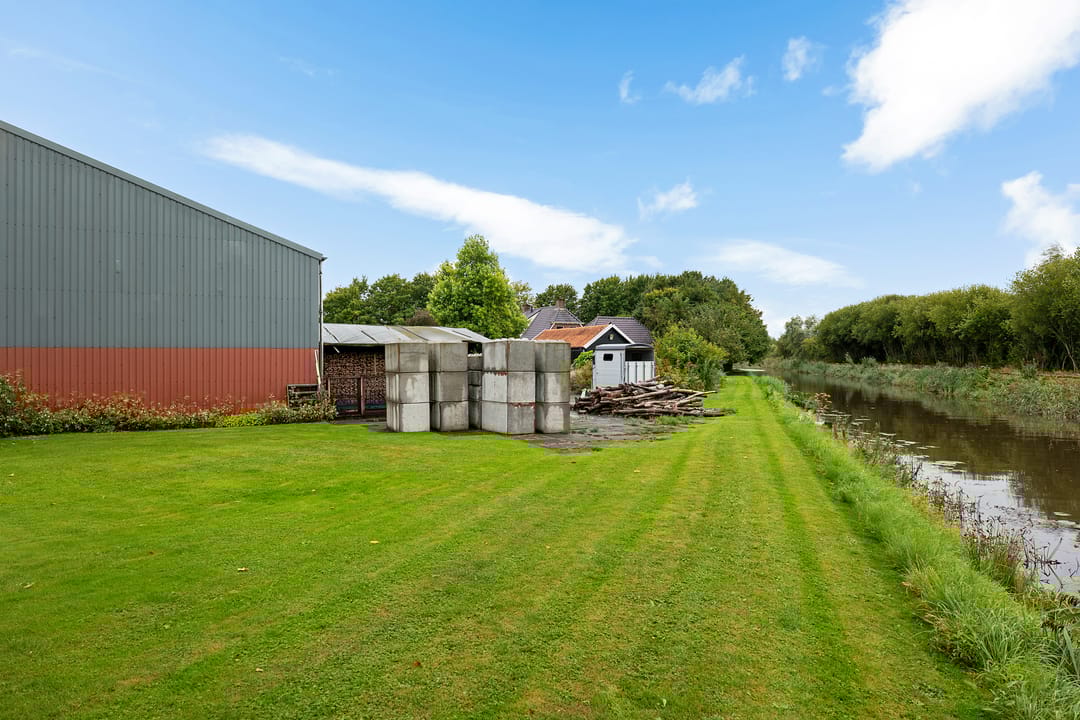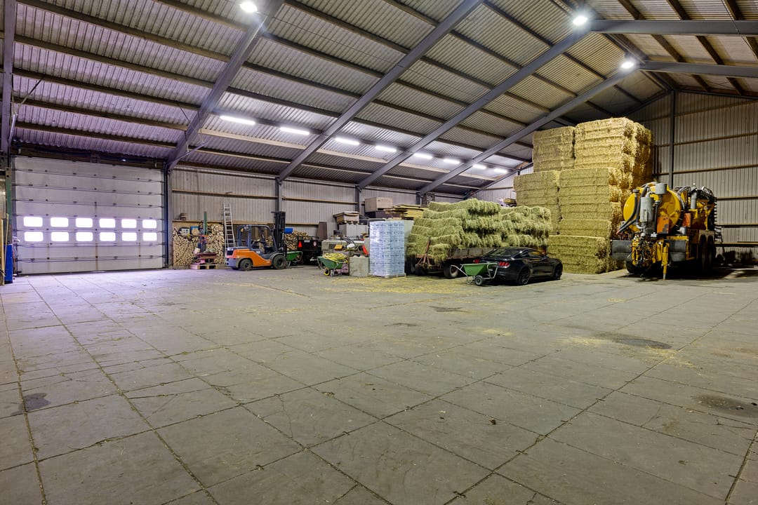 Op het erf naast de woning staat een ruime landbouwschuur van ca. 1.800 m², degelijk gebouwd met stalen spanten, houten gordingen en damwand gevels op een betonnen borstwering. Het dak is voorzien van stalen dakplaten met hemelwaterafvoeren en beschikt over 50 zonnepanelen.