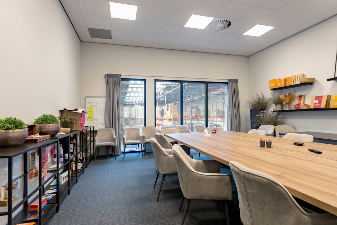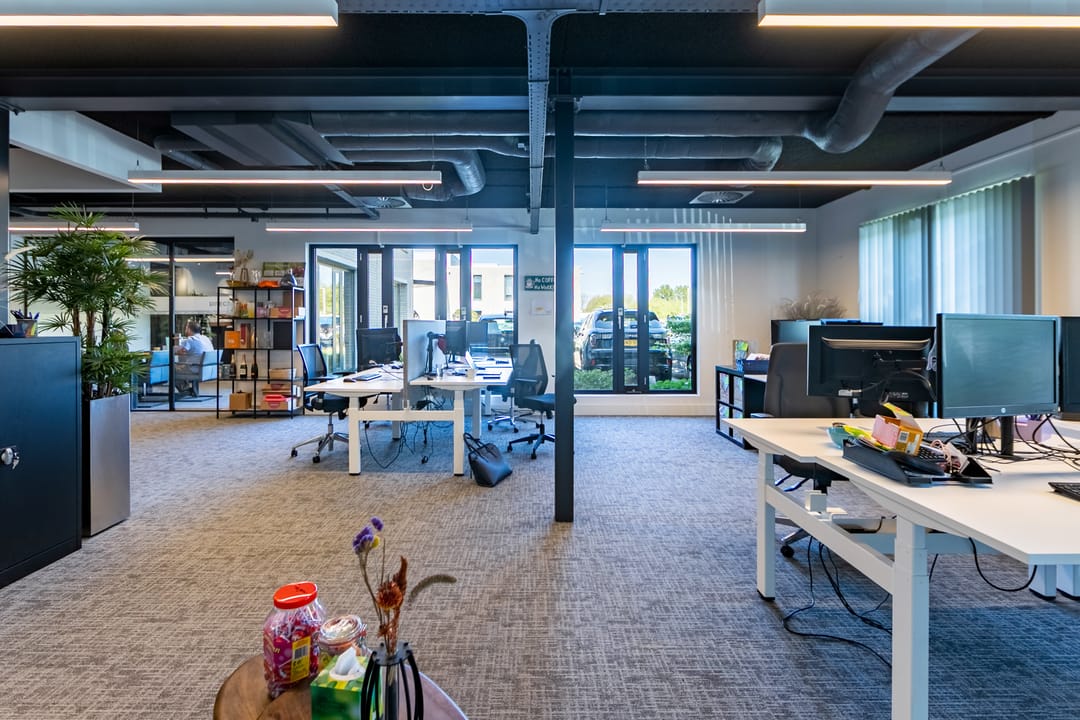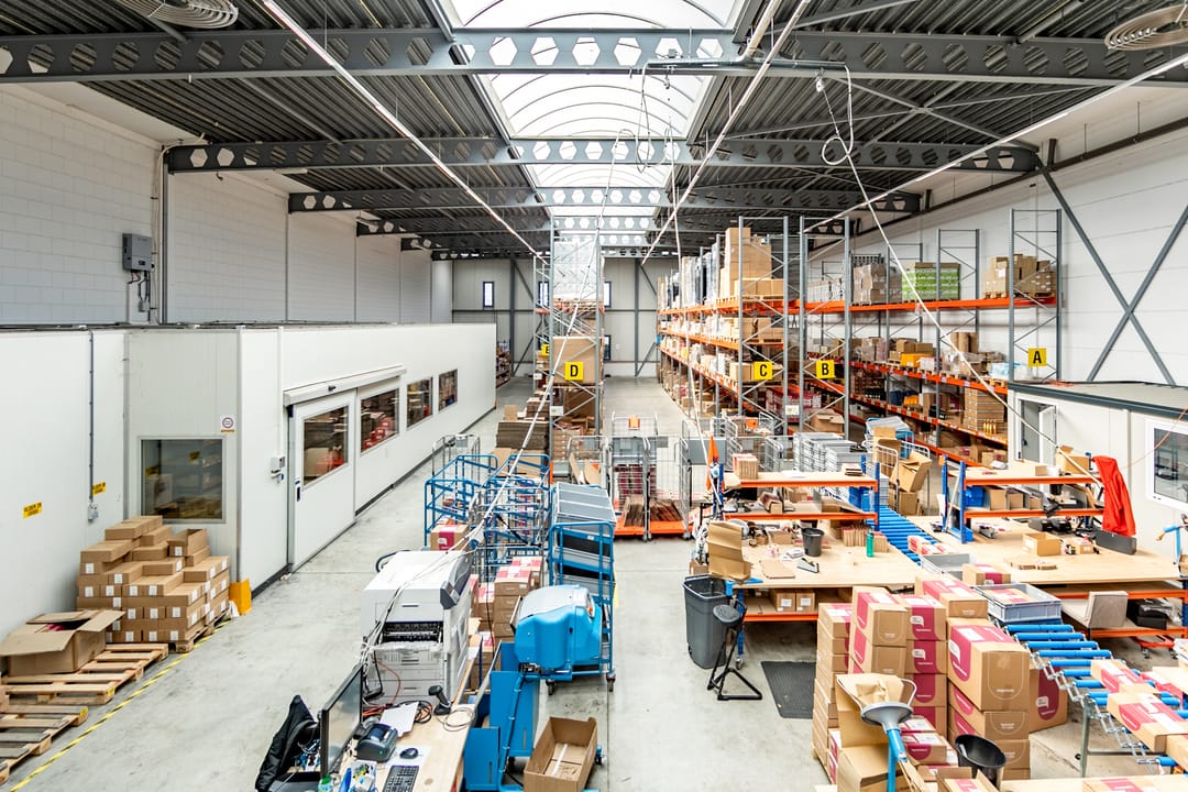 - Lichtstraten, overheaddeuren, krachtstroom, toilet, pantry, airconditioning, inbouwarmaturen en te openen ramen